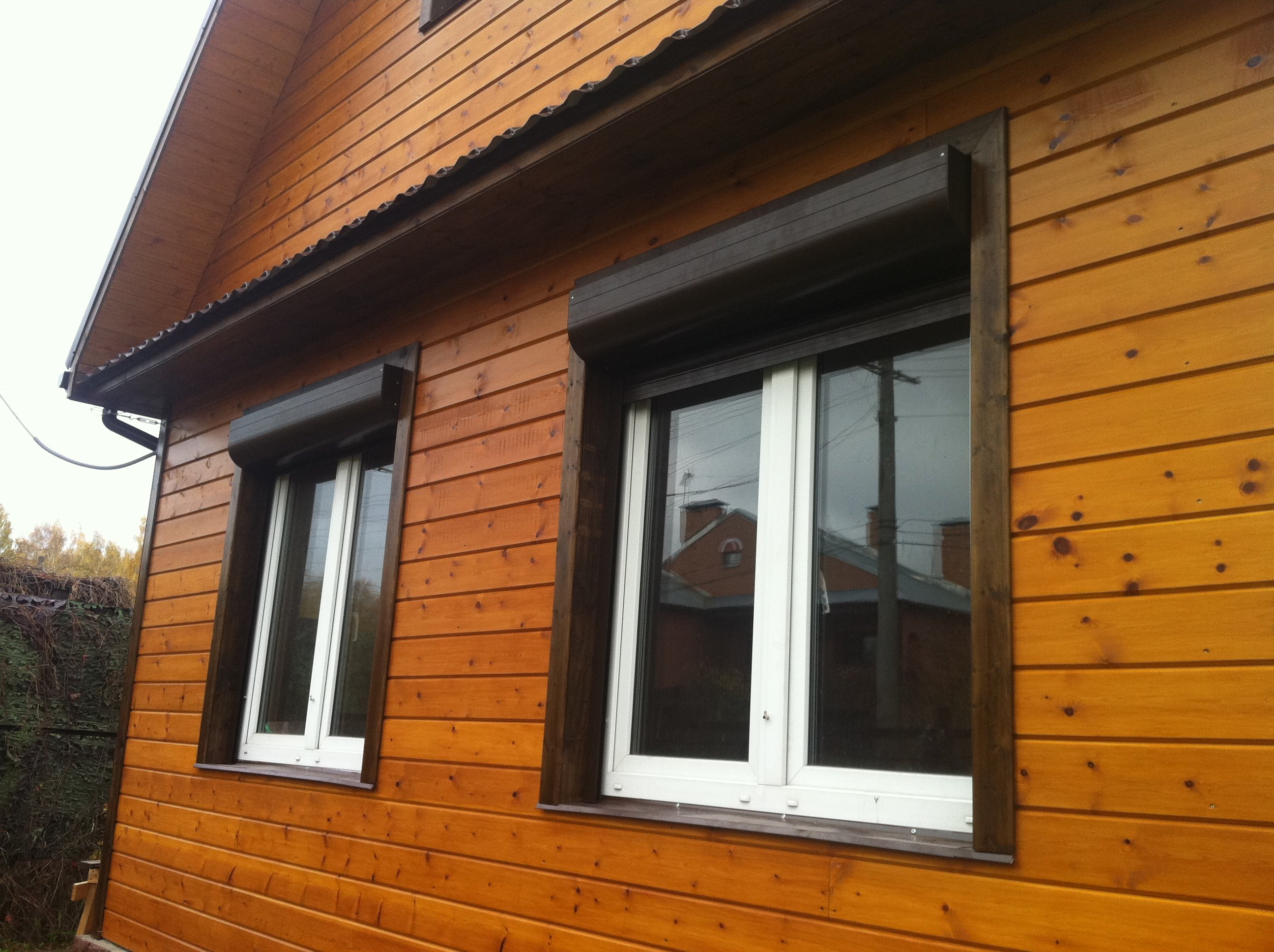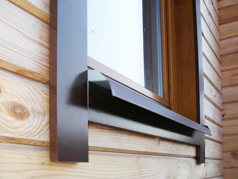 Complementan el arnés superior, están dispuestos en ángulo y aseguran que el agua no salga por la ventana, sino directamente frente a ella. El ángulo de inclinación puede ser igual al ángulo de inclinación del techo. Las viseras se montan directamente sobre el arnés superior cerca de la pared. Además, la junta entre la pared y la parte superior de la visera se puede sellar con sellador (para uso en exteriores).Las viseras de madera descansan en el arnés superior con consolas. El metal simplemente "cuelga" sobre él.