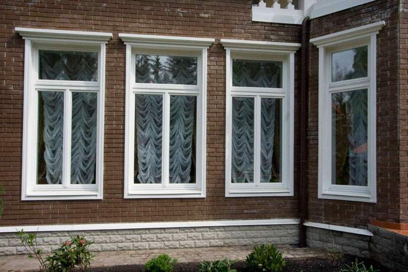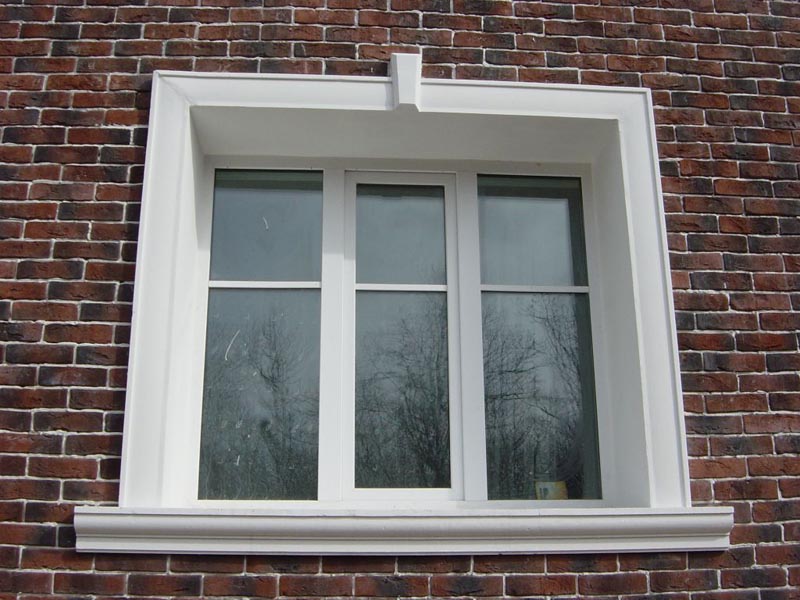 Bandas de plástico: un escenario ideal para ventanas de metal y plástico. También se pueden instalar para enmarcar estructuras de ventanas de madera, pintadas en blanco o gris claro. La ventaja de este tipo de producto es su bajo costo y facilidad de mantenimiento. A diferencia de las contrapartes de madera, no requieren protección constante contra las influencias externas negativas. Además, son mucho más baratos que sus contrapartes de metal. Las desventajas de tales marcos incluyen una pequeña selección de formas y colores. Pero con la elección correcta de color, el marco adquirido se verá apropiado tanto contra el fondo de piedra o ladrillo blanco, como contra el fondo del revestimiento. La instalación de plataformas de plástico se puede realizar tanto dentro como fuera. Dichos productos son mínimamente susceptibles a temperaturas extremas y, debido a los colores de alta calidad utilizados en su fabricación, no se desvanecerán ni se volverán amarillos al sol.