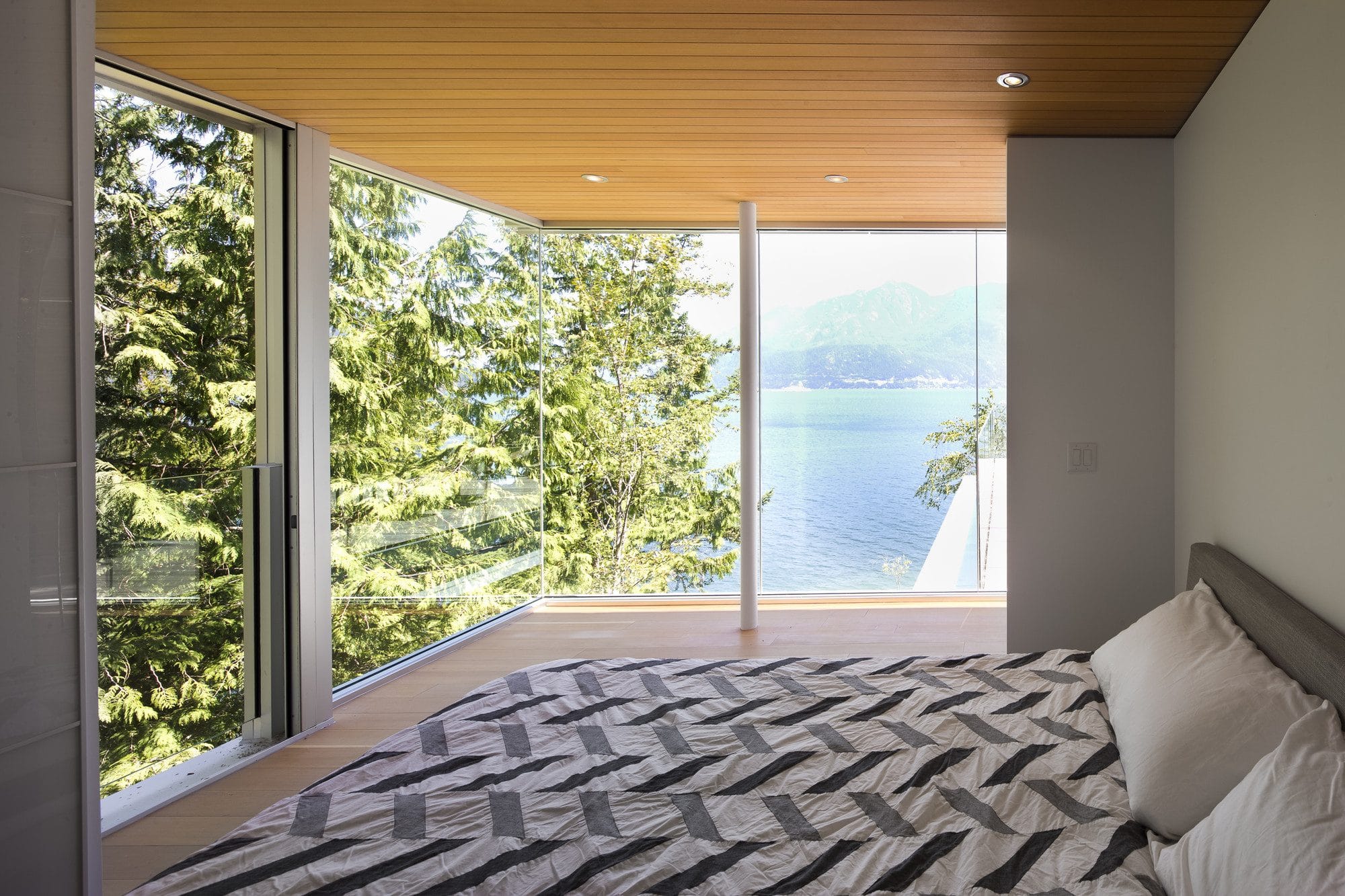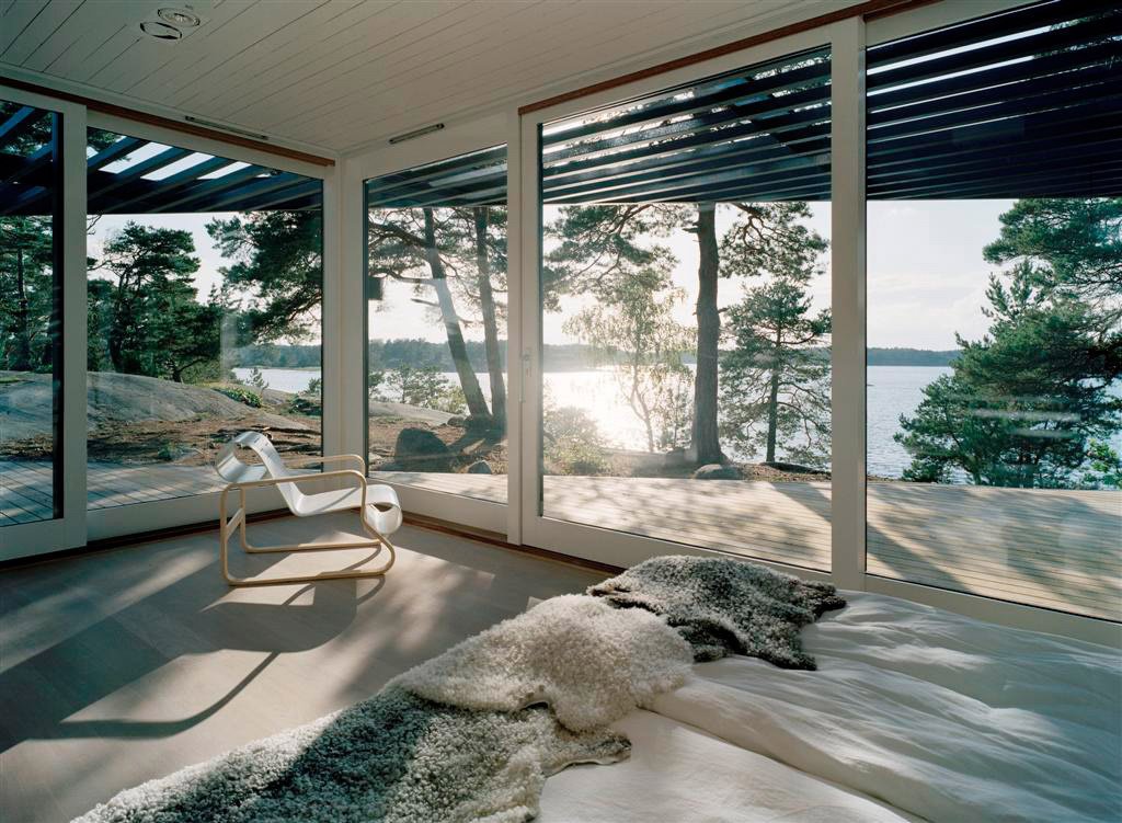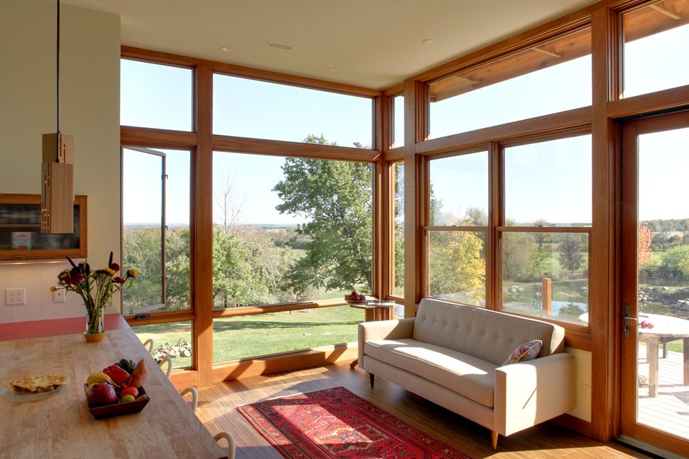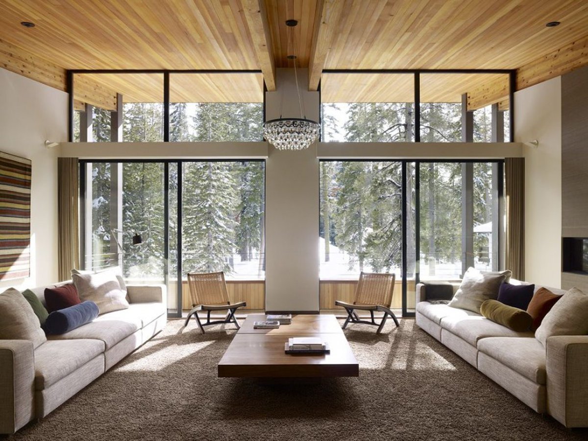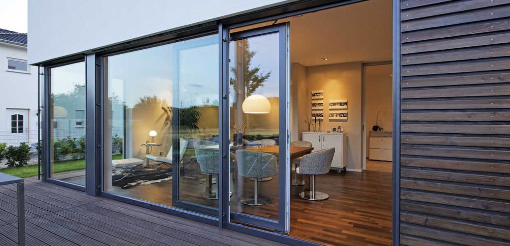 El acristalamiento panorámico se planifica mejor en el lado sur de la casa.
