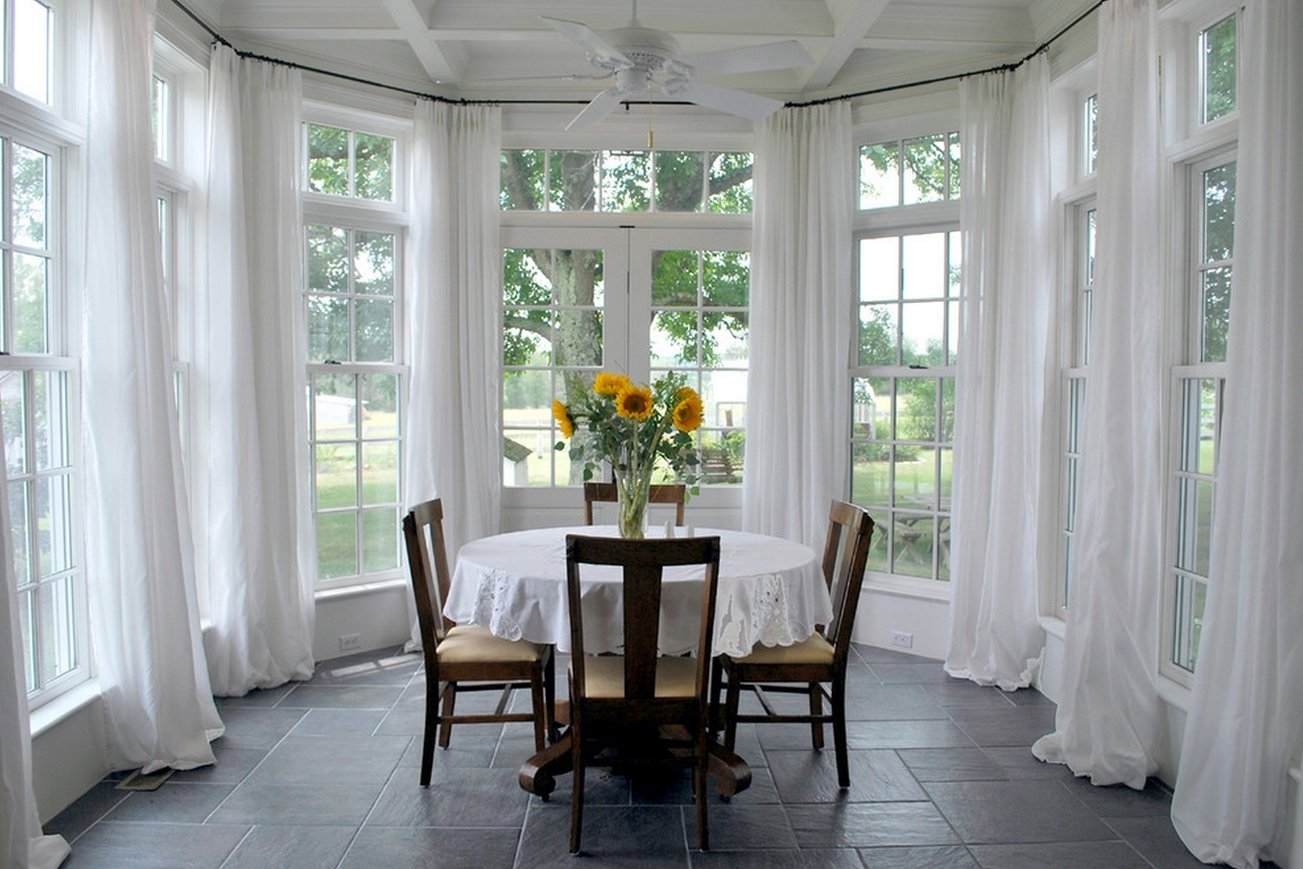 Este tipo de diseño le permite crear un ángulo de visión de 270 grados, que es imposible para ventanas clásicas y panorámicas. El método es más simple que el balcón, pero más complicado que la versión "sorda" del acristalamiento, combina las características de ambos. Basado en el principio de composición, hay varios tipos de instalación. Una esquina transparente es la más estética de ellas. En este caso, el vidrio está adyacente entre sí, y la costura resultante se cierra con un sellador transparente. Si la instalación se lleva a cabo con un "ángulo transparente", entonces los perfiles deben seleccionarse con indicadores reforzados de resistencia al impacto. No se necesitan sistemas de perfiles especiales al implementar el segundo método. Los bordes de los dos marcos actuarán como una junta de esquina. El método más simple generalmente no es alternativo. Una columna angular o una sección significativa de la pared en la esquina de la habitación se usa como delimitador de dos ventanas de doble acristalamiento.