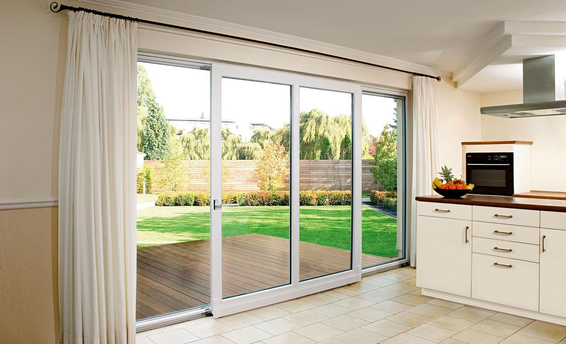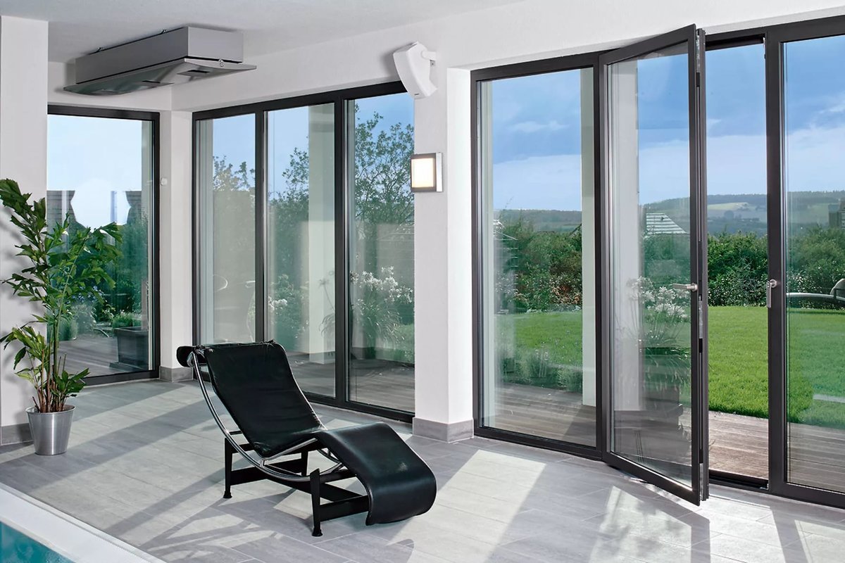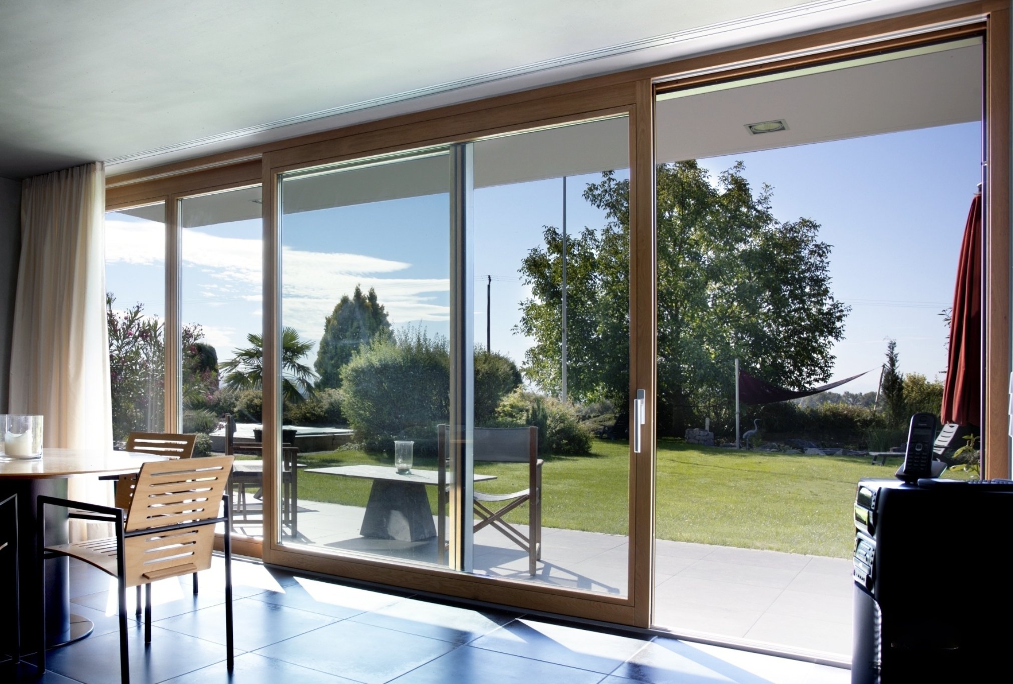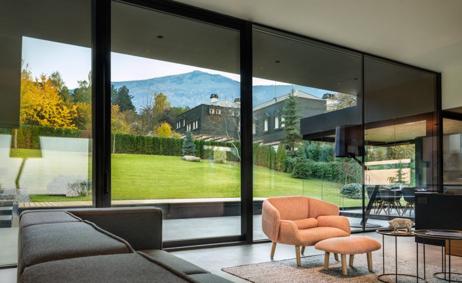 Acristalamiento panorámico con puertas batientes.