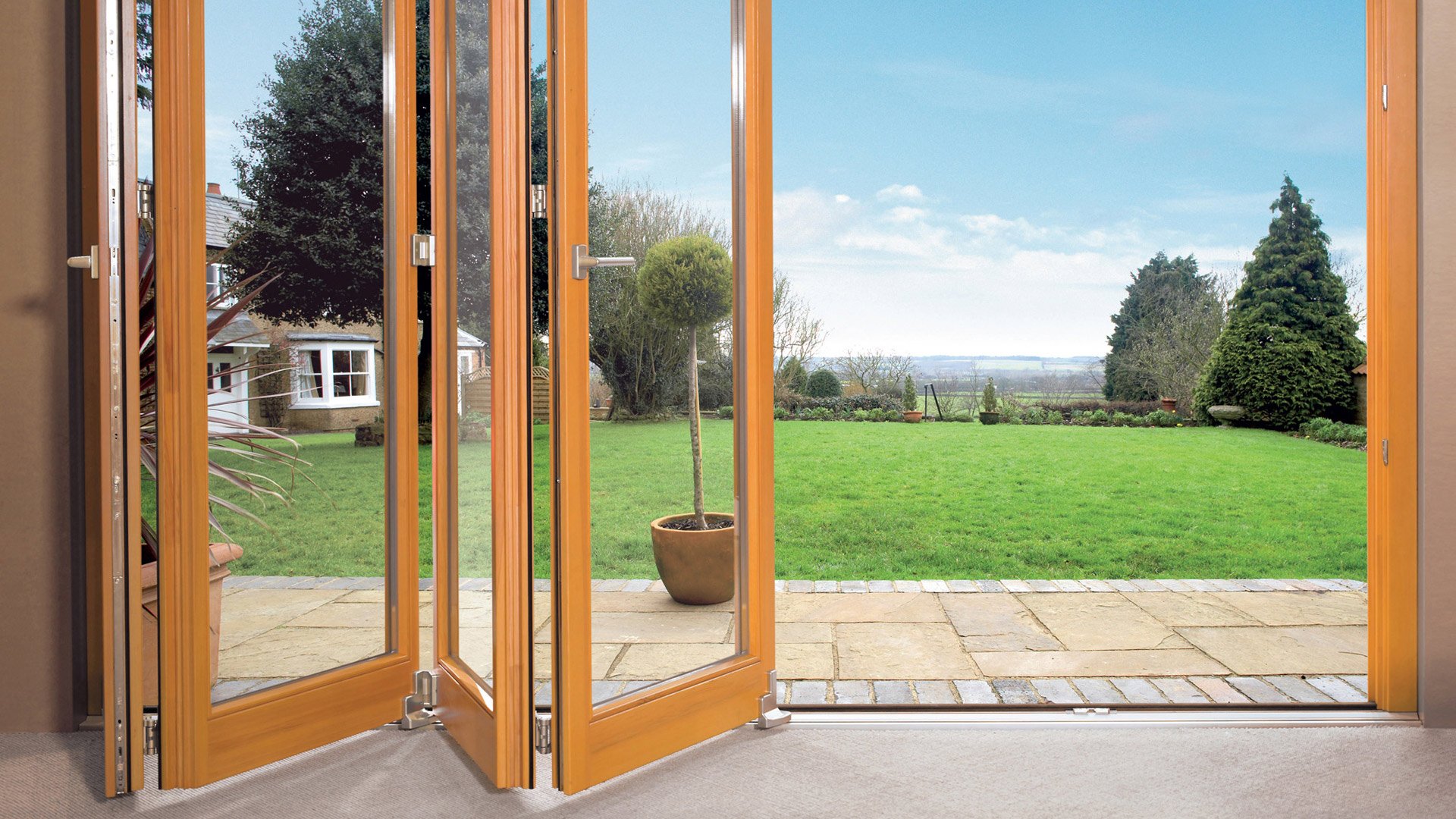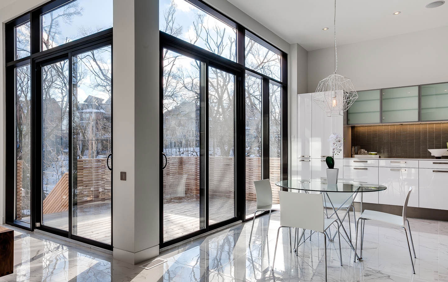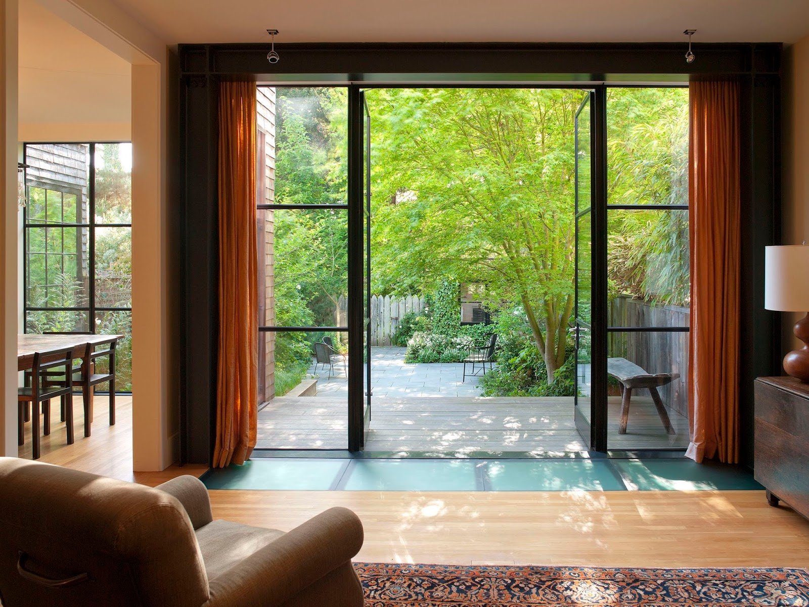 Acristalamiento panorámico con puertas batientes.