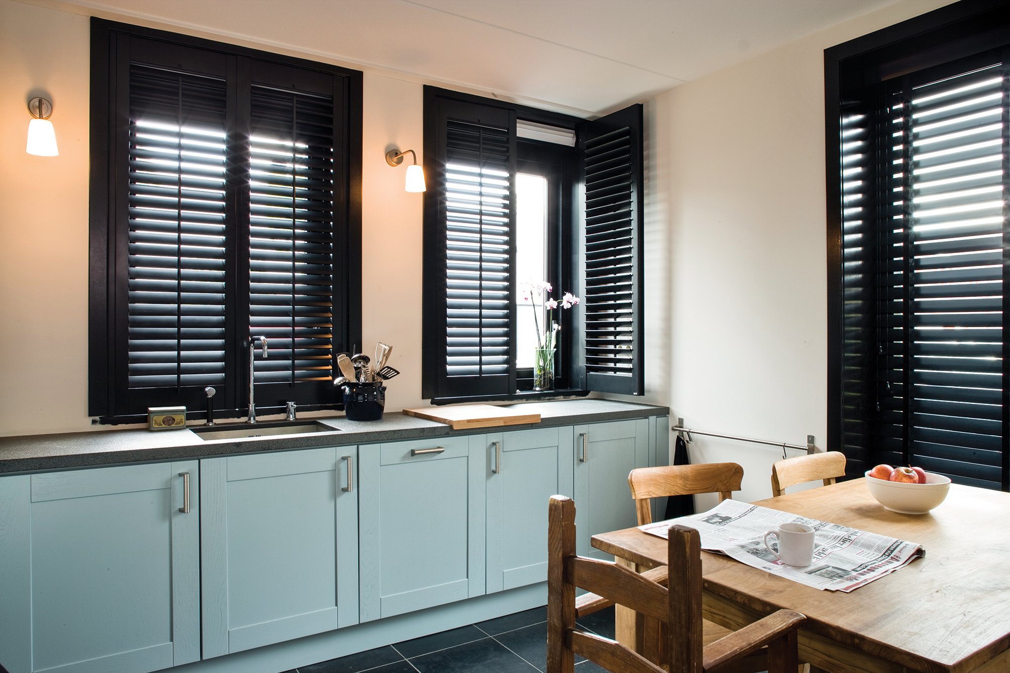 Un ambiente excelente para el uso de persianas es el interior y el exterior en el estilo otomano. Las persianas de madera encajan en el tema mediterráneo tan orgánicamente. Las persianas también son una parte integral de los estilos mexicano y latinoamericano. En el estilo japonés, se utilizan persianas de "acordeón" y persianas de terraza. Dirección arquitectónica La arquitectura rusa, a su vez, es famosa por las casas de troncos talladas con fajas pintadas. Las persianas de materiales en mal estado en colores blanqueados ayudarán en la implementación de la situación en el espíritu de la provincia francesa, al estilo provenzal.En cuanto a las técnicas de diseño, las persianas se utilizan como decoración de todo el interior. Las persianas brillantes en la ventana del baño darán una sensación de ligereza y relajación. Las persianas de madera altas decorarán el gabinete y la chimenea, las compactas se ven bien por encima de la cabecera de la cama. Las cortinas de plástico en colores del arco iris agregarán color al interior de la guardería. Las persianas en forma de escotilla de ventilación se convertirán en un componente importante del diseño original.