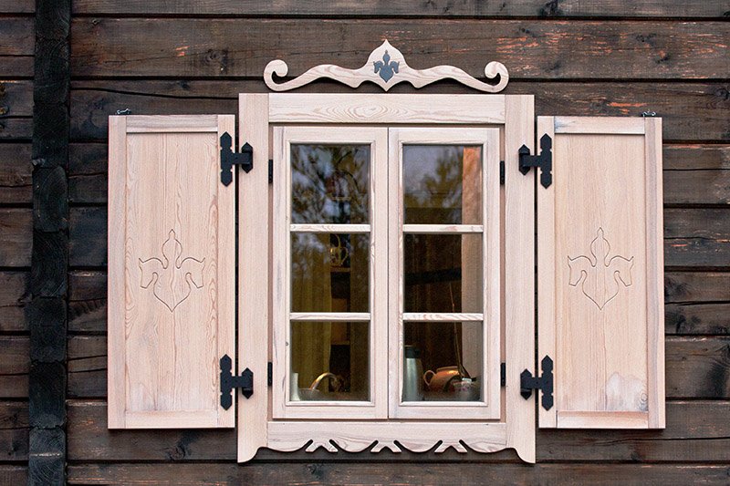 La solución adecuada para decorar casas al viejo estilo ruso. Las ventanas con tales persianas deben estar decoradas con plataformas decorativas talladas. Además, se permiten formas pronunciadas. Las fajas talladas generalmente tienen un patrón abstracto complejo o un patrón naturalista con plantas, animales y personas. Una casa de madera cambiará más allá del reconocimiento si instala dicha composición en ella. Sin embargo, las opciones decorativas tienen un inconveniente significativo: debilitamiento de la protección contra la luz solar. Por lo tanto, es mejor seleccionar persianas ciegas con patrones en relieve.A pesar de la conexión con las tradiciones rusas, las persianas talladas son populares no solo en Rusia. También lo hacen en Europa y en algunas regiones montañosas del resto del mundo. Se pueden ver persianas caladas en las casas en el antiguo estilo escandinavo. En Europa, se encuentran persianas talladas en casas con entramado de madera y edificios antiguos de las ciudades de la antigua Liga Hanseática.