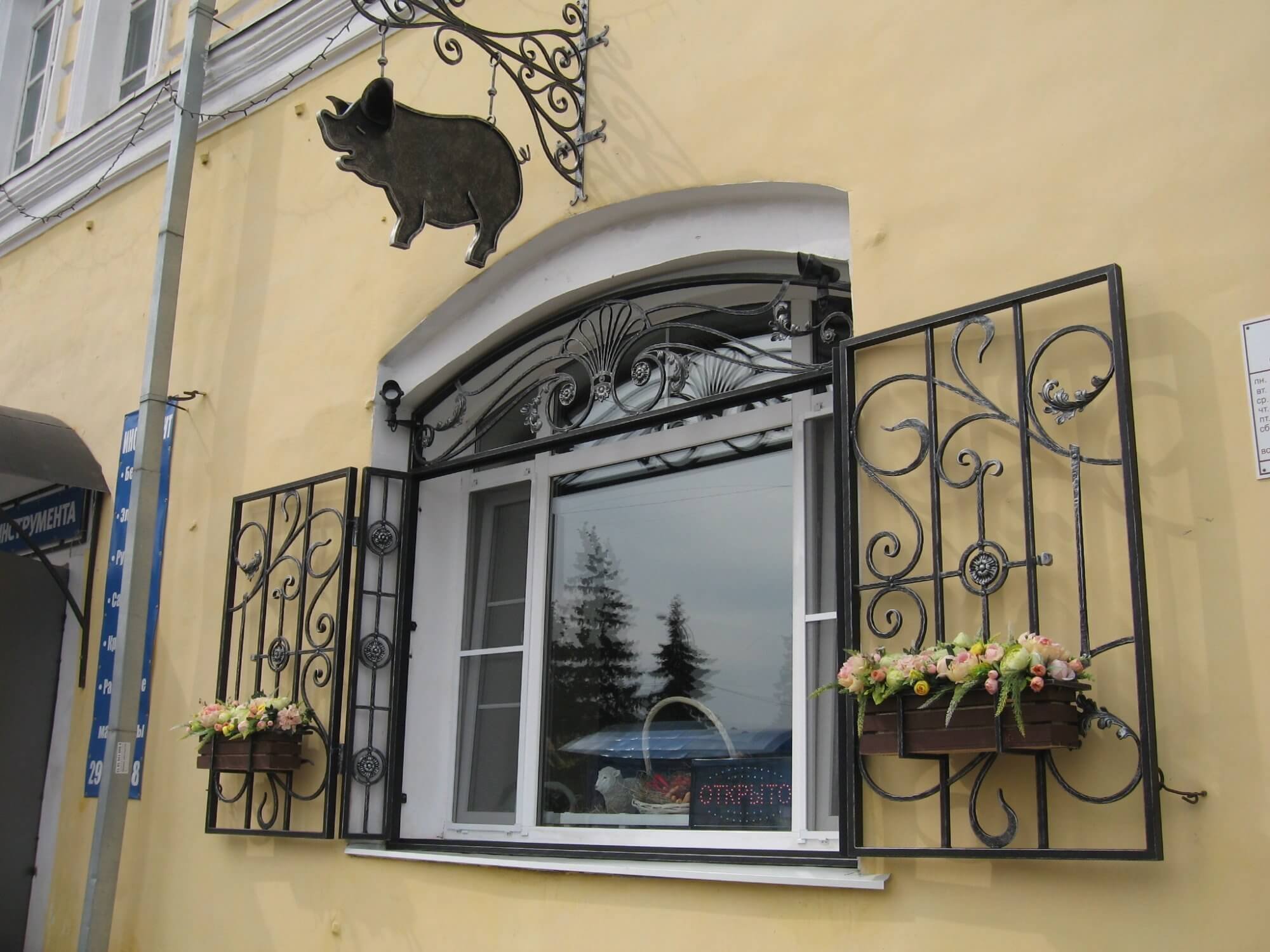 Las opciones forjadas se hacen en forma de escudos o rejillas. Ambos pueden realizar una función decorativa, aunque la principal es protectora en cualquier caso. Los escudos son relevantes para los edificios vacantes, mientras que las rejillas ayudarán a mantener la luz natural en el nivel adecuado. A pesar de que las aletas ciegas protegen mejor contra los vándalos, las celosías son más efectivas contra los robos, ya que el marco de metal es más estable. Las persianas forjadas no son adecuadas para todas las fachadas, pero en algunos casos se convierten en sus principales detalles decorativos. Los ejemplos incluyen edificios de estilo Art Nouveau y Art Nouveau. Las persianas de celosía están diseñadas en forma de patrones redondeados, a veces con soportes para macetas. El propietario podrá hacer una hermosa composición con flores frescas. Una ventana decorada de tal manera “fluye” orgánicamente hacia la fachada con plantas trepadoras.