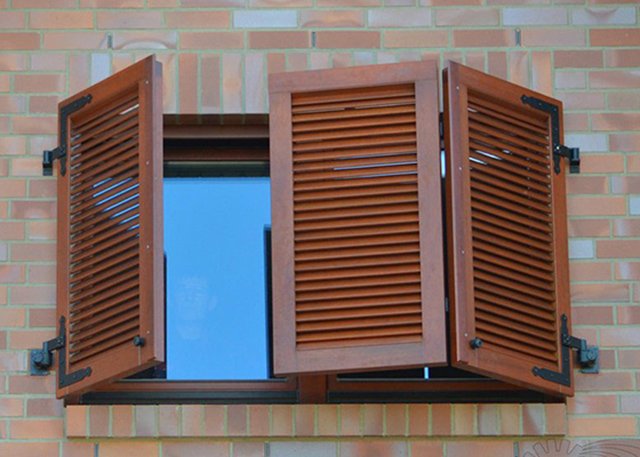 En general, las persianas y las aletas de madera son estructuralmente simples, confiables en términos de protección contra el sol y el viento,Apariencia presentable. Al mismo tiempo, carecen de resistencia al fuego, lo que hace que sea inútil en objetos con protección contra incendios mejorada. La barrera en forma de persianas de madera salvará del vandalismo, pero no será efectiva contra los ladrones. Otra desventaja significativa es el alto costo. Con todo esto, las persianas de madera son una solución clásica.