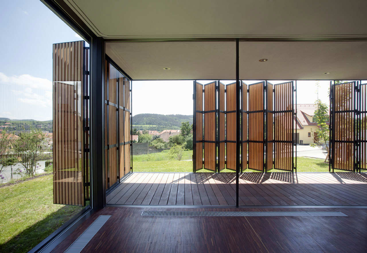 Las persianas-terrazas también están hechas de estructuras plegables verticales y horizontales, un objeto arquitectónico muy hermoso.