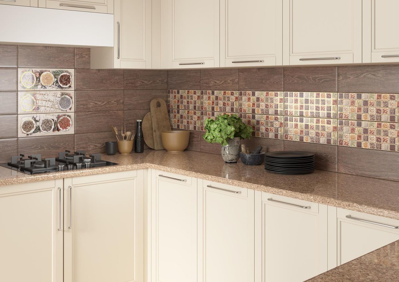 El gres porcelánico - vidriado - para paredes, mate - para pisos es más que apropiado en la cocina. Los productos más populares con tamaños de 30x30. Otras opciones, desde las más pequeñas, 5x5, hasta 100x100 y 120x180 cm, también son muy populares.