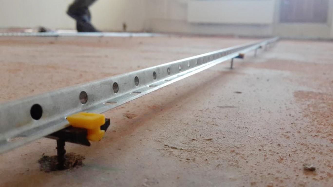 Como balizas, puede usar el perfil habitual para paneles de yeso. Se colocan dos elementos en el relleno y el nivel. Cuando un sitio se nivela, las balizas se eliminan y se reorganizan. La mezcla seca se vierte con una reserva, si es necesario, embistida con un rallador de yeso.