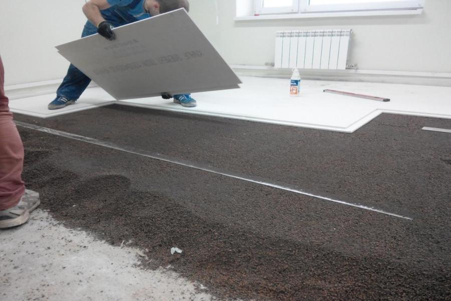 Las placas se pueden colocar en una o dos capas. Las características principales del material y su grosor influirán en la elección del método. Después de colocar el piso, queda sellar las juntas, costuras y secciones con sujetadores con masilla. Todas las áreas procesadas deben lijarse, la superficie terminada tratada con compuestos aislantes.