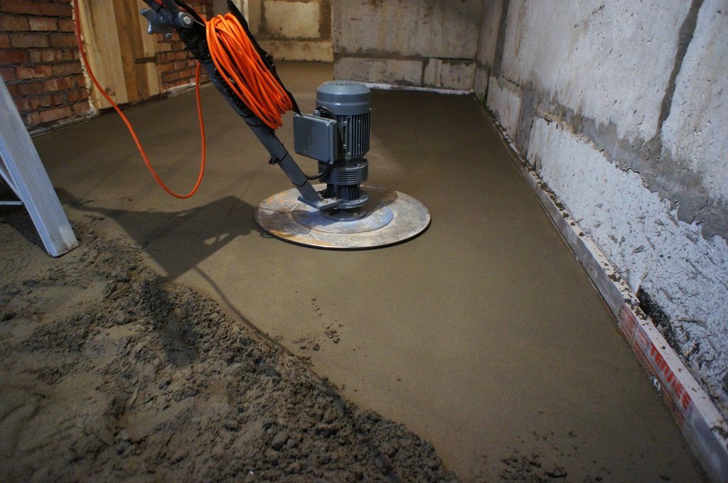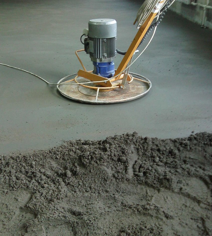 Para aumentar la calidad del recubrimiento, se cubre con una envoltura de plástico y se humedece periódicamente para evitar grietas. Es necesario excluir corrientes de aire, que pueden conducir a un secado rápido. Después de unos días, puede caminar sobre la regla y asegurarse de que esté nivelada. Para suavizar la superficie del hormigón, se lleva a cabo el procedimiento de planchado. Se esparce cemento puro sobre el concreto y se frota con una llana metálica.