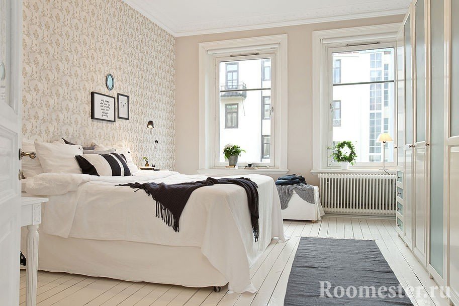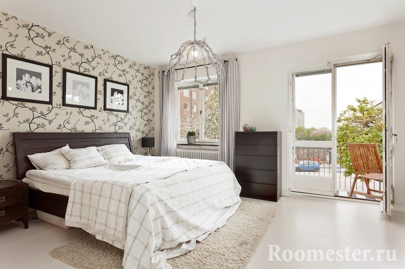 Si las paredes son bastante oscuras, entonces las cortinas, los apliques y las colchas son mejores para elegir la luz, el color del piso. Si el piso y las paredes permanecen claros, entonces el textil debe estar oscuro. Esto no permitirá que la habitación se convierta en una habitación sin formas y colores. Una combinación armoniosa de tonos claros en la decoración, oscura, en los muebles agregará una sensación de estilo, calidez y armonía al dormitorio. Una gran cantidad de combinaciones de tonos blancos agregarán frío.