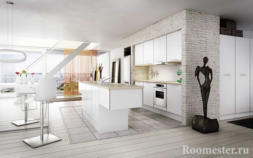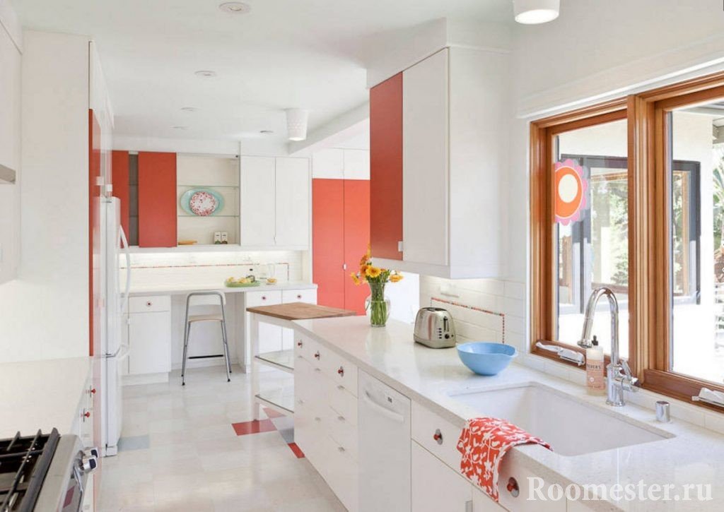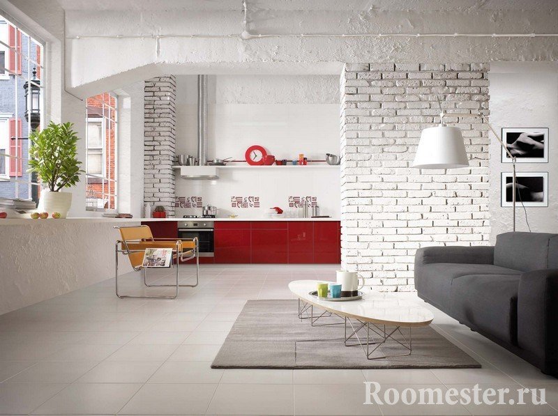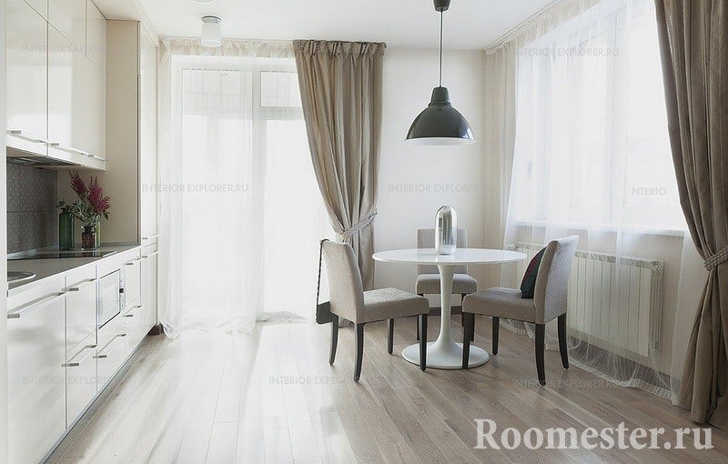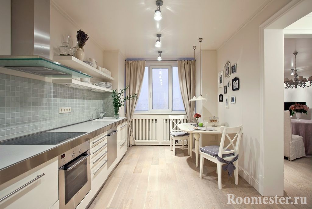 La ventaja del piso claro de estas habitaciones es la versatilidad. Contra el fondo de un piso blanco, café, gris claro, cualquier color de las paredes se verá hermoso. Combinamos un piso claro con cualquier color de un juego de cocina, los muebles de un color brillante parecerán más jugosos.
