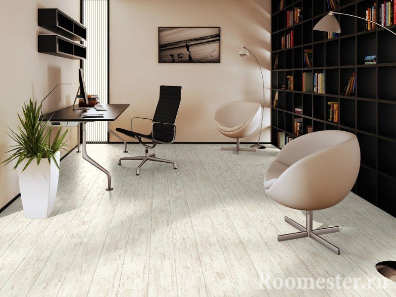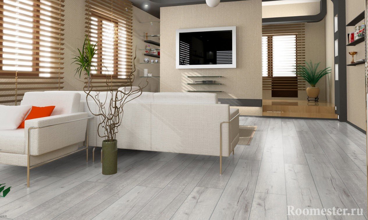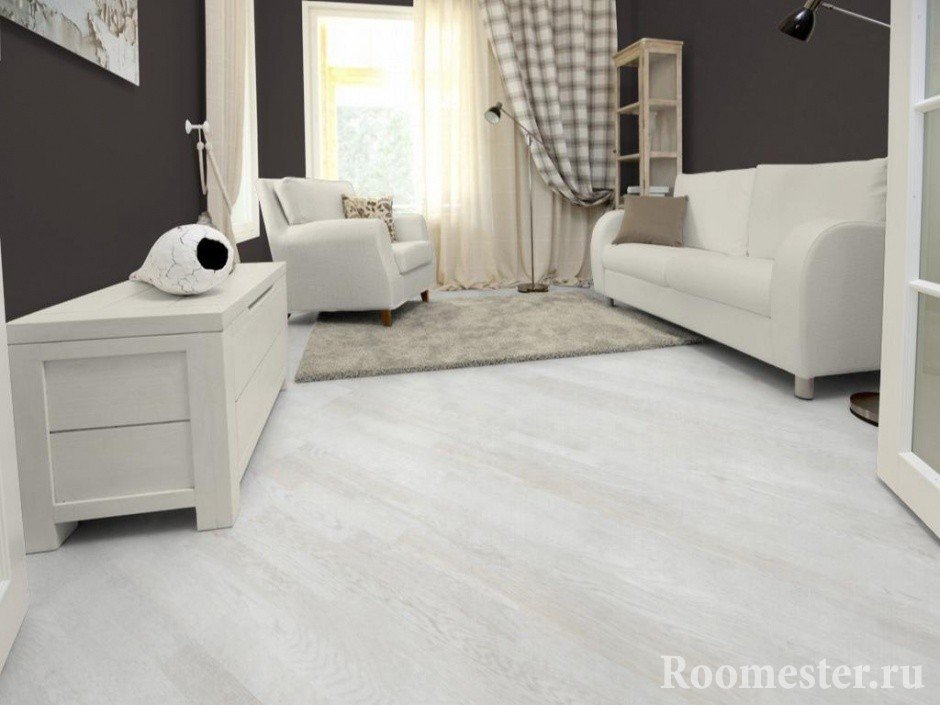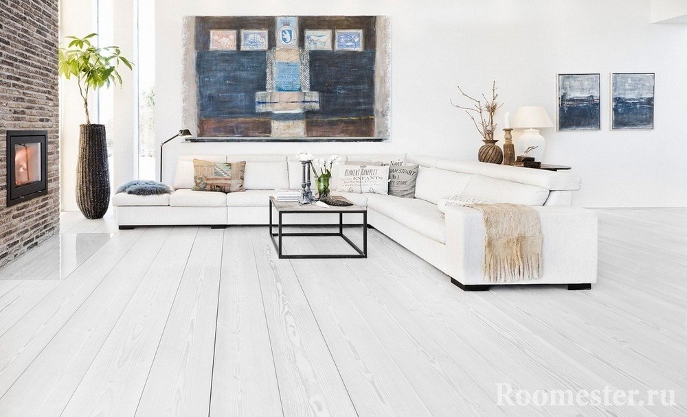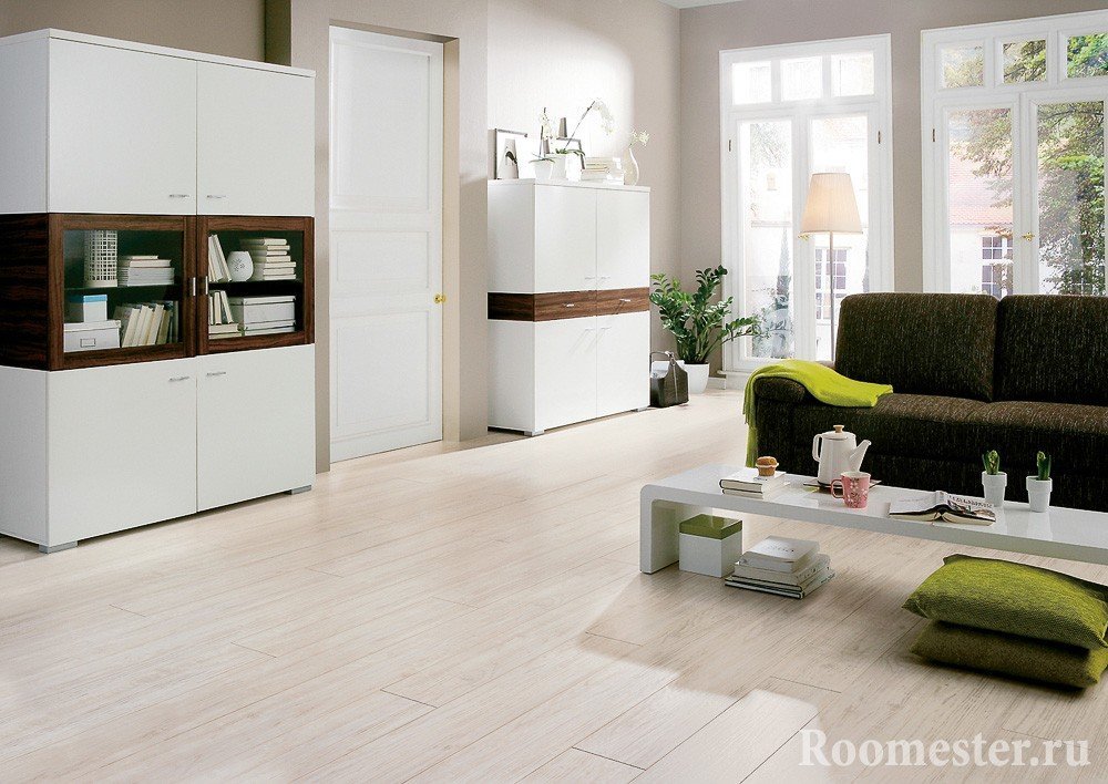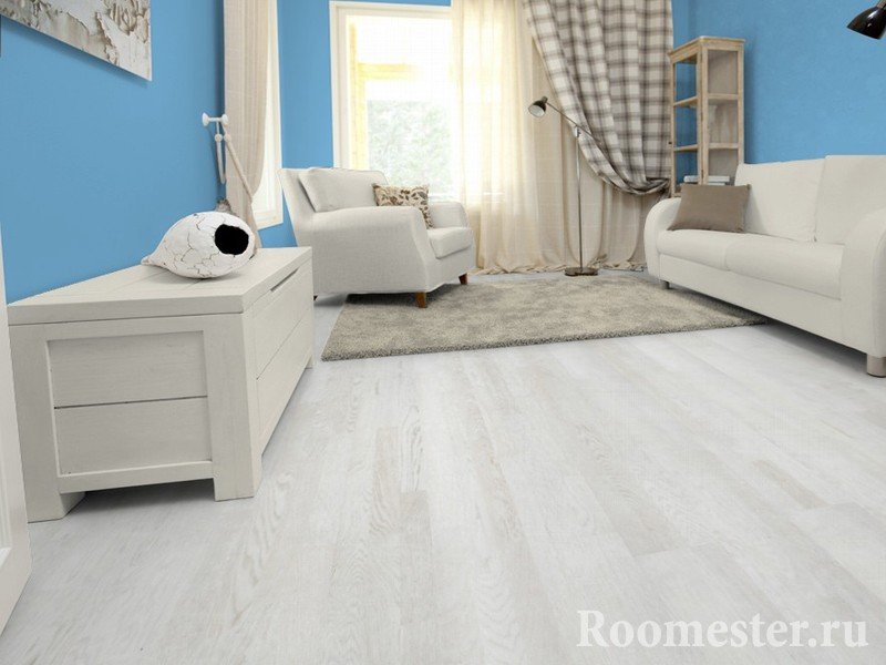 Laminado es un revestimiento universal para pisos en cualquier habitación. El mercado moderno le permite elegir un laminado de una amplia variedad de tonos, incluso el blanco.