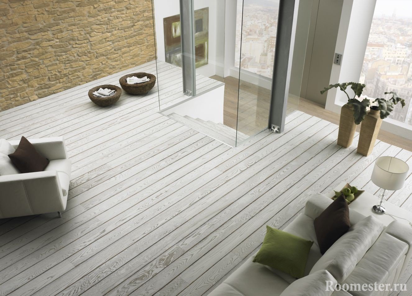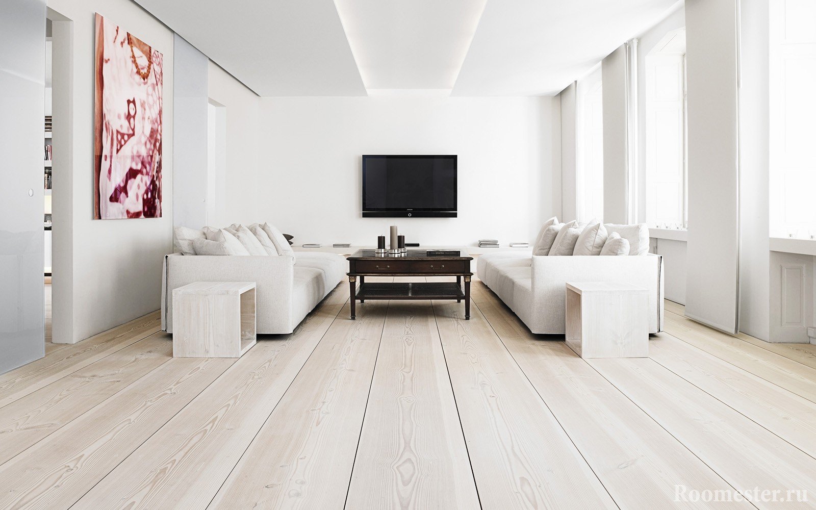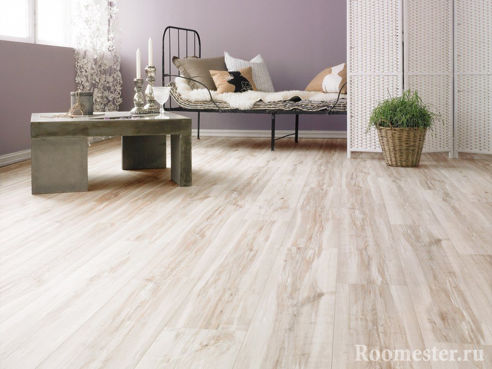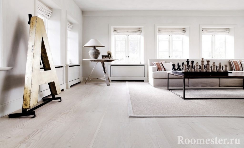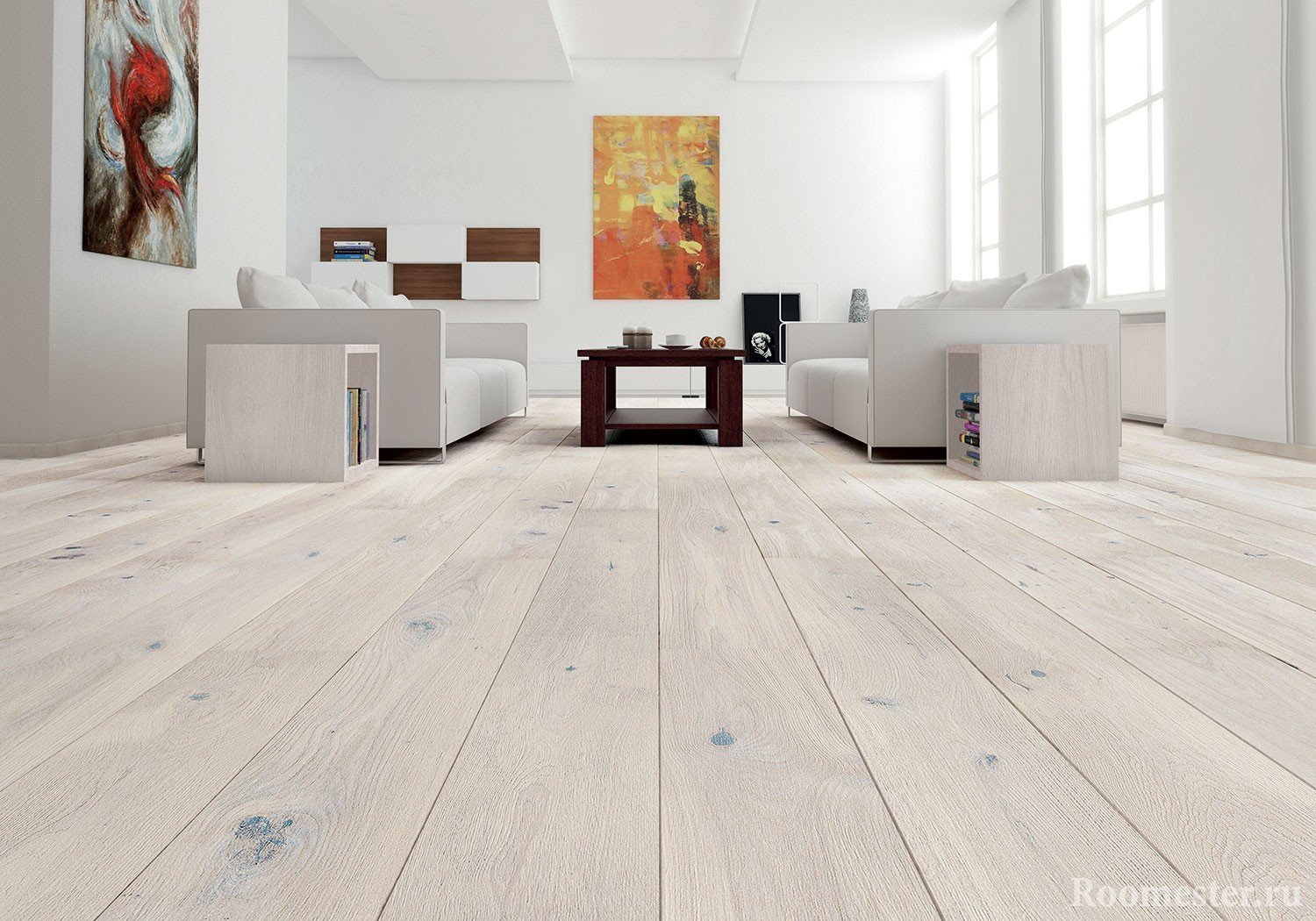 Laminado es un revestimiento universal para pisos en cualquier habitación. El mercado moderno le permite elegir un laminado de una amplia variedad de tonos, incluso el blanco.