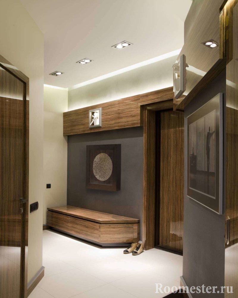 Con el uso frecuente de la habitación, aumenta su nivel de contaminación. Por lo tanto, se recomienda utilizar el diseño sobre la base del color oscuro de las puertas, oscuro, que no se ensucia fácilmente, el color del piso, las plataformas y los zócalos. Explica el uso del color oscuro con un bajo nivel de suciedad, lo que lleva a la necesidad de limpiar los productos con menos frecuencia, respectivamente, a un menor desgaste.