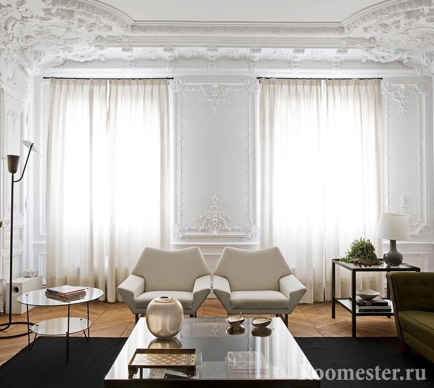 Atencion La moldura suave se usa cuando el techo ya está saturado con una cierta decoración. Para evitar la sensación de descuido, las molduras en relieve se dejan de lado.