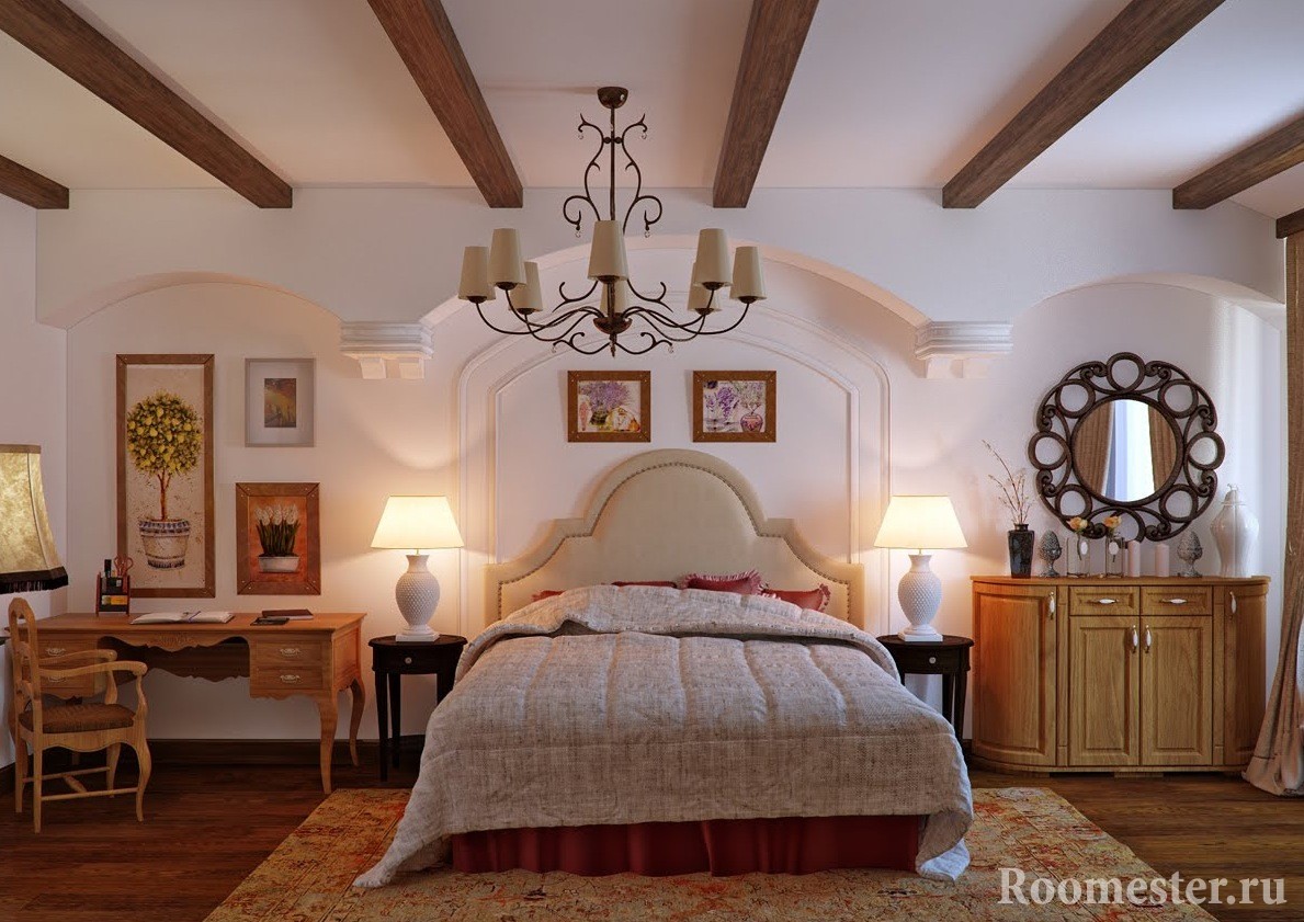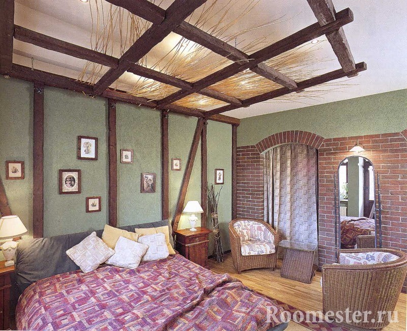 Los elementos decorativos se convierten en el énfasis principal en la decoración interior. Las vigas en el techo llaman la atención y, si se diseñan adecuadamente, pueden convertirse en el centro de la composición artística;