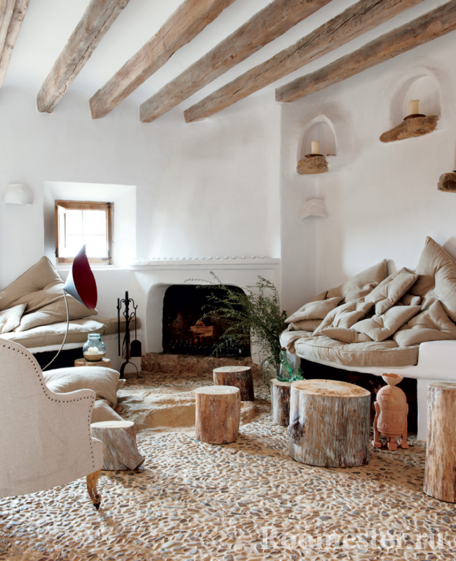 Los elementos rústicos se verán muy originales si se combinan con el estilo elegido. La madera cruda combina bien con el estilo marino y el diseño interior griego;