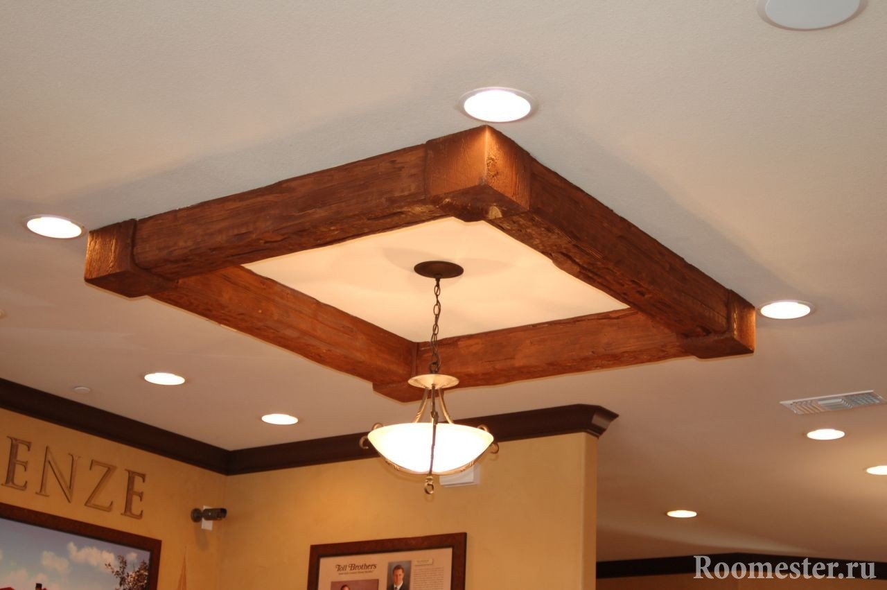 Por lo tanto, las vigas pueden ocultar fácilmente posibles fallas de diseño. Por ejemplo, juntas irregulares al terminar con paneles de yeso. Además, en estructuras de techo, es posible prever la colocación de servicios públicos (para integrar la iluminación decorativa, el cableado se realiza en las vigas).