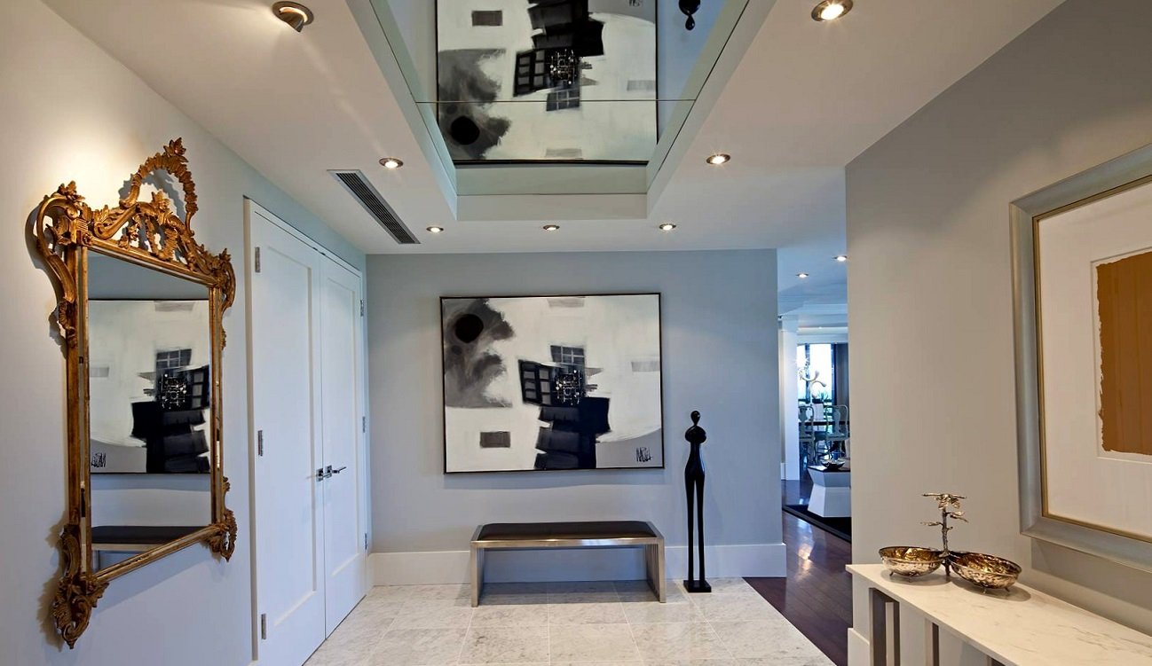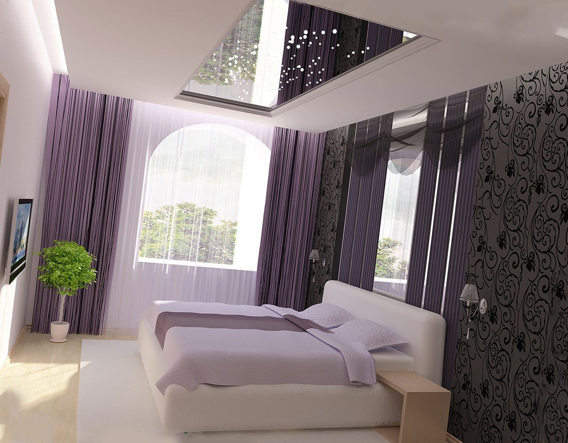 Los espejos hacen que la habitación sea más grande: más ancha y más alta. La esencia de los trucos de diseño es la apariencia de la perspectiva, la duplicación de la situación en una superficie reflectante. Por supuesto, debe decorar cuidadosamente la habitación con espejos para no crear accidentalmente un estudio de ballet en lugar de un dormitorio. Las superficies reflectantes, como regla, se colocan en una pared, lo que sirve como acento. Los espejos deben estar dispuestos en grupos o secciones que estén separadas por franjas verticales (las horizontales tienen el efecto contrario). En algunos casos, utilizando muebles empotrados (armarios), cuyas fachadas están decoradas con superficies reflectantes. Para los mismos fines, puede usar plástico, barniz y lacobel (un tipo de vidrio).