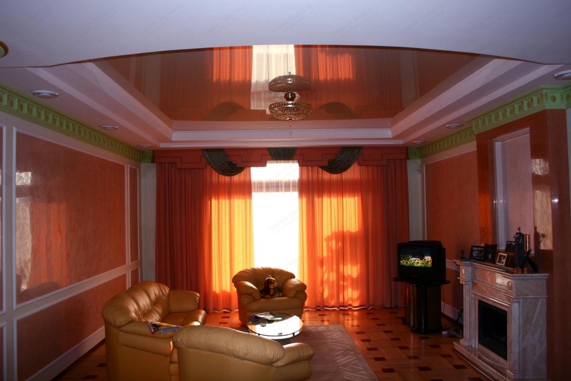 Si hay una chimenea en la sala de estar, el borde superior se emite con la ayuda del color (más oscuro que el techo).