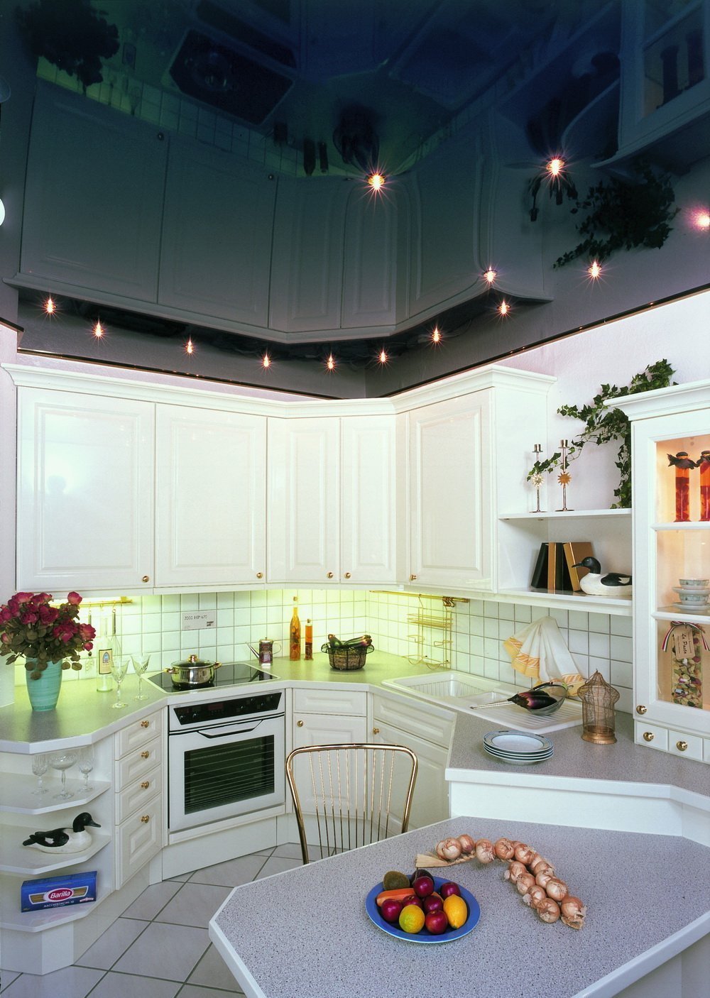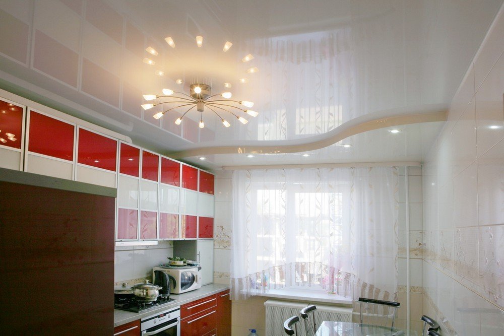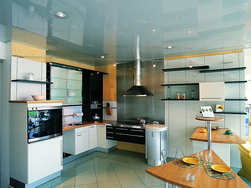 Todo esto se puede hacer usando técnicas de diseño simples. Incluso el problema de vecinos constantemente ruidosos desde arriba se resuelve con una decoración competente. Anteriormente, no pensaban en el diseño de techos: pintaban o blanqueaban. Los artesanos especialmente creativos lograron pegarlos con papel tapiz. Una gama moderna de materiales y tecnologías abre nuevas posibilidades. Hablemos de los techos de cocina y sus características.