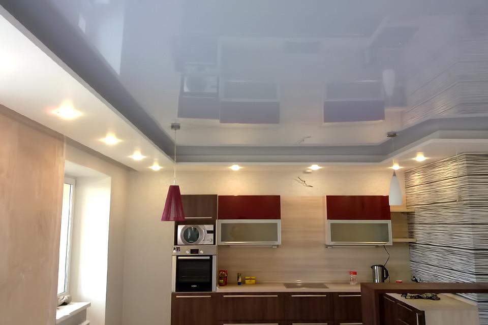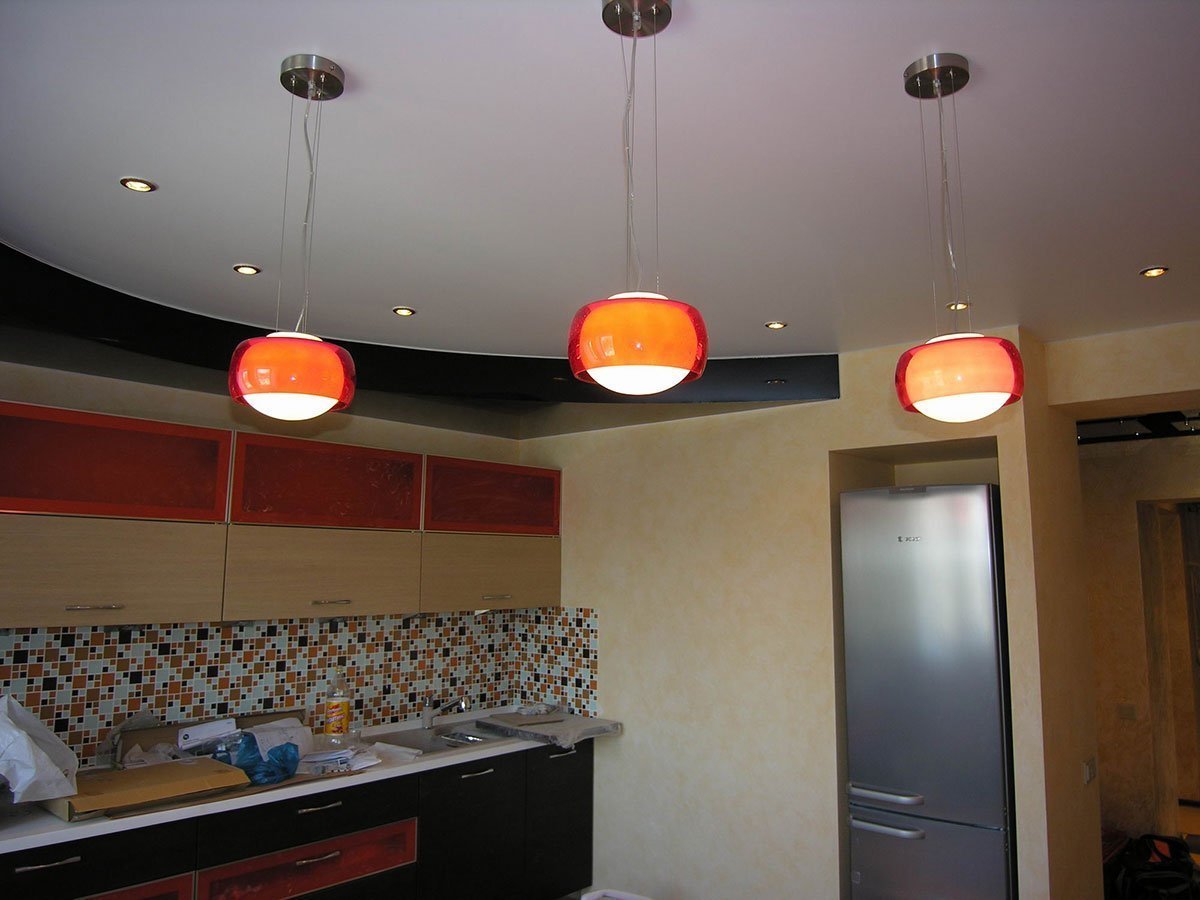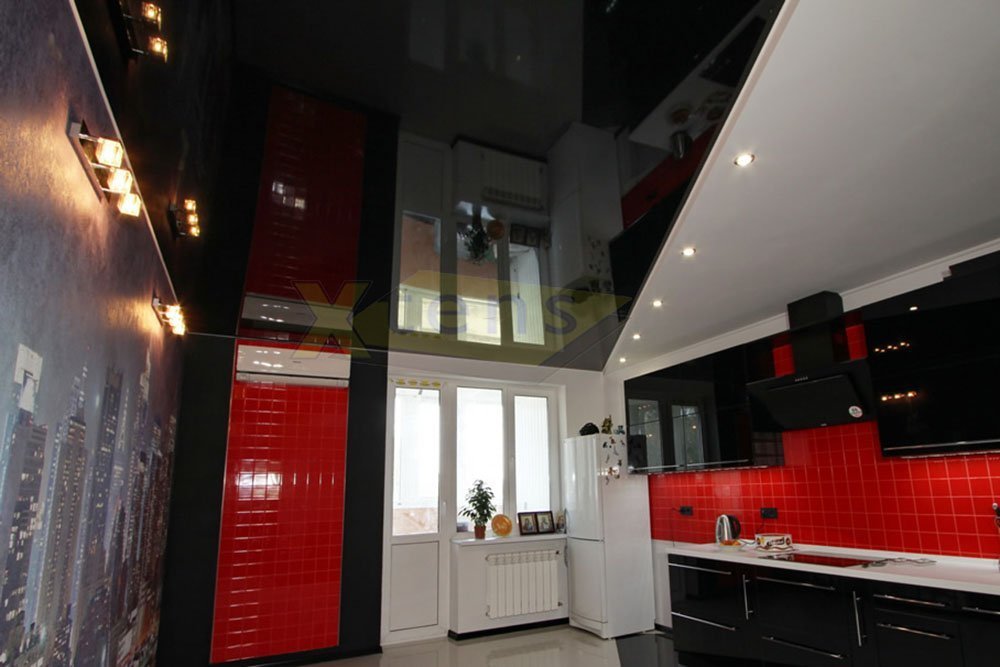 Los techos tensados se ven elegantes y lujosos. No tienen costuras, y la resistencia es sorprendente: con una "inundación" desde arriba, cada metro cuadrado puede soportar una carga de hasta 100 litros de agua. Él "cuelga" peligrosamente sobre la habitación, pero contendrá el líquido y protegerá el resto de la situación. Cuando se elimina el agua, el techo volverá a su posición original.El vinilo, del que está hecho el lienzo, se refiere a materiales de combustibilidad media, por lo tanto, se considera incombustible. El techo tensado puede ser: