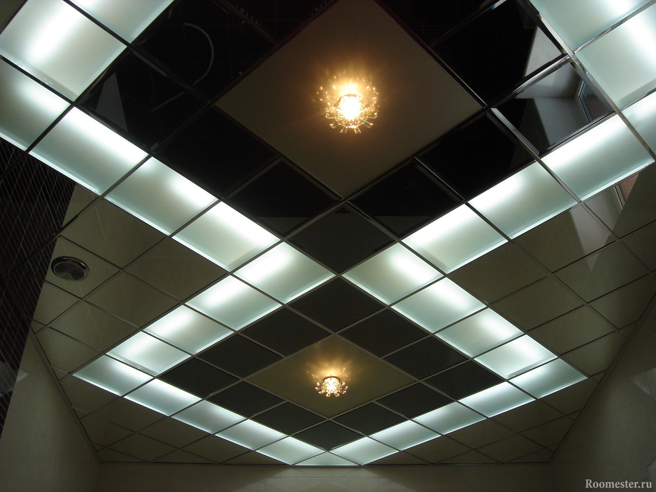 Los falsos techos llevan su nombre debido a la base subyacente de la estructura, que consiste en un marco de metal o madera con materiales de decoración fijados. En el espacio entre techos resultante, puede ocultar cualquier sistema de comunicación, tuberías, ventilación o clima, así como instalar todo tipo de dispositivos de iluminación al gusto de los propietarios de la habitación.