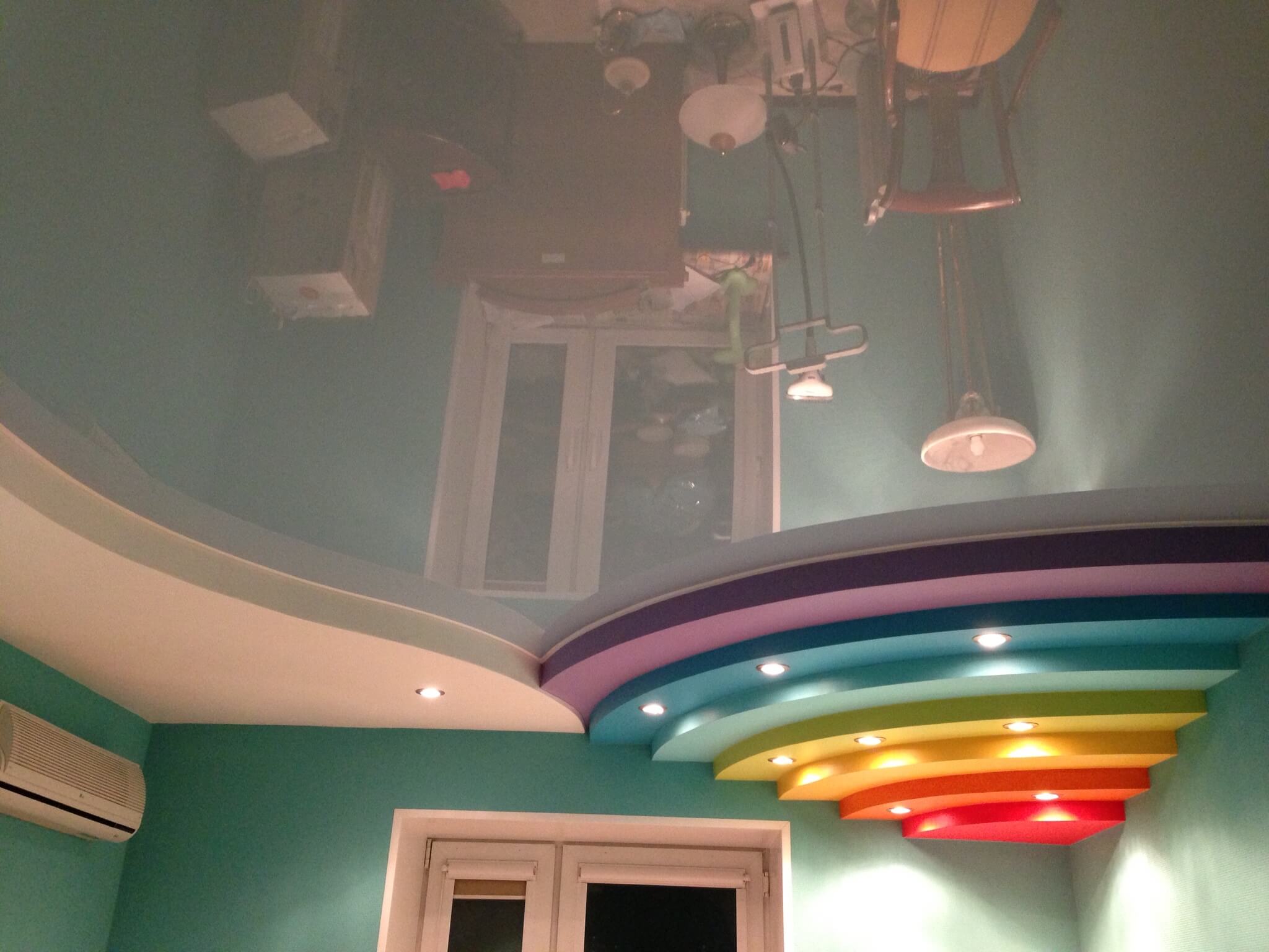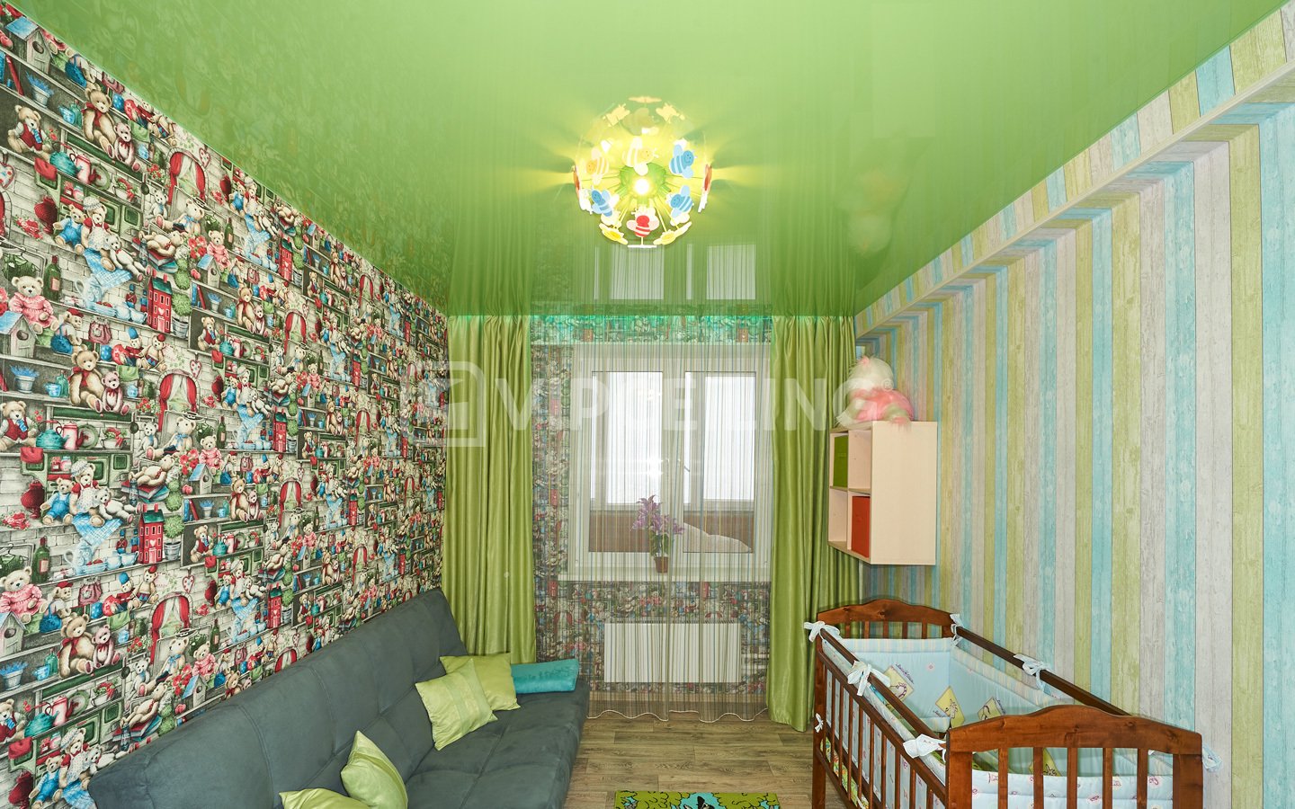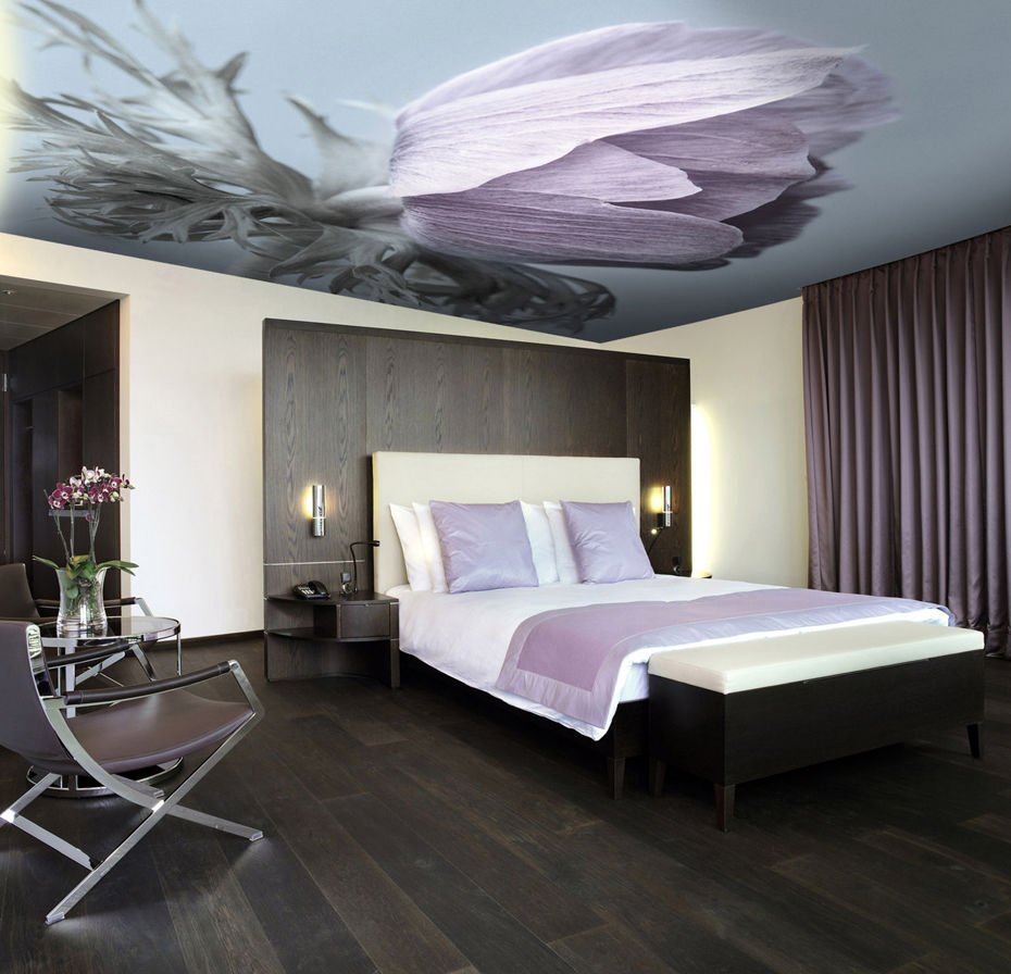 Para amplias salas de estar, dormitorios, habitaciones infantiles con ventanas panorámicas hacia el lado sur, lienzos mate en varios niveles, colores fríos y saturados son adecuados. Una habitación estrecha con una sola ventana hacia el norte está decorada con un lienzo ligero, cálido y brillante en un nivel.