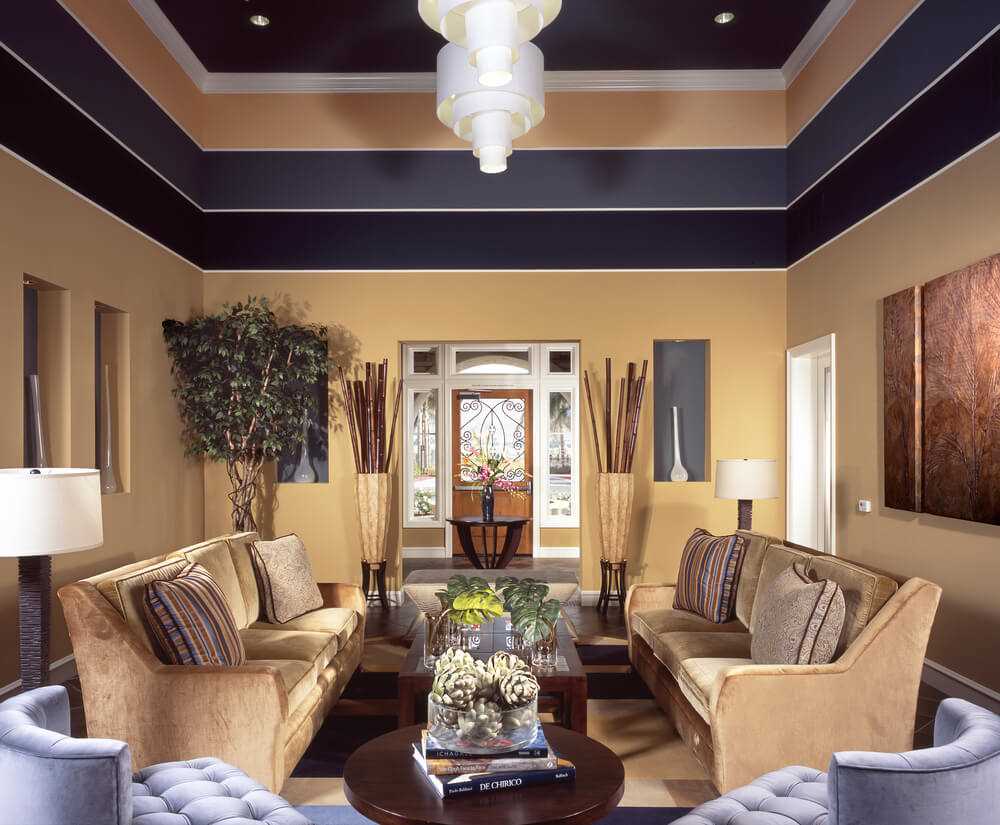 Los revestimientos lisos se usan con mayor frecuencia: son más fáciles de elegir para un determinado estilo interior. Por lo general, el color de las paredes se oscurece más que el techo en al menos dos o tres tonos. La combinación de beige con paredes marrones, azul con violeta, amarillo con rojo-naranja, escarlata con blanco como la nieve, y otros se ven hermosos.