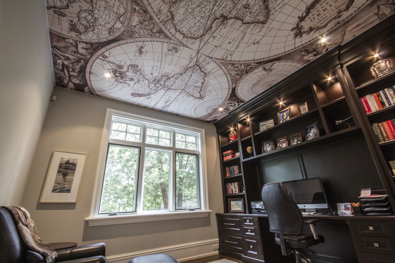 El papel tapiz se pega antes de la instalación de la lona del techo, excepto cuando a menudo se planea cambiarlos.