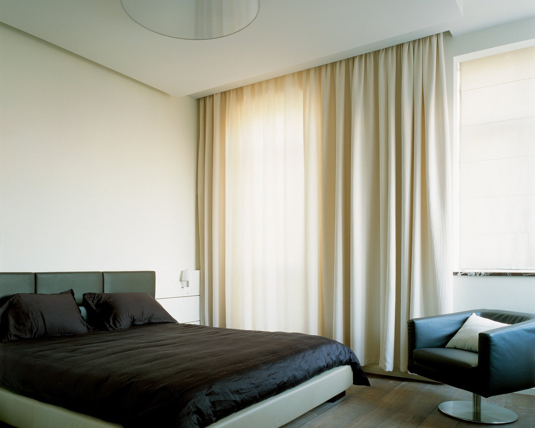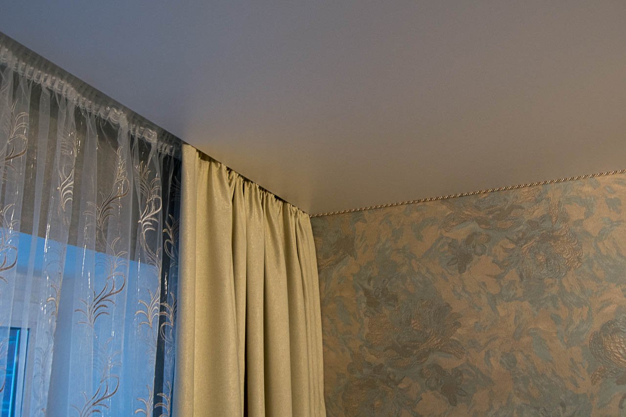 Oculto: en este caso, la cornisa es invisible, se "esconde" en un nicho. El método es relativamente complicado, pero parece más interesante: las cortinas parecen caer debido al plano del techo. La cornisa se compra antes de tomar medidas desde el techo: el tamaño de la cornisa corresponde al tamaño del nicho, el área del panel. La cornisa está montada en el techo; se utilizan tacos con una funda de metal o plástico. En dos o cuatro milímetros de la cornisa, se adjunta una viga de madera, más tarde se fija un perfil que fija la lona del techo. Adjuntarlo desde el lado donde está la cornisa, para que la película cubra toda la barra. Esta opción es la más adecuada para techos muy brillantes.