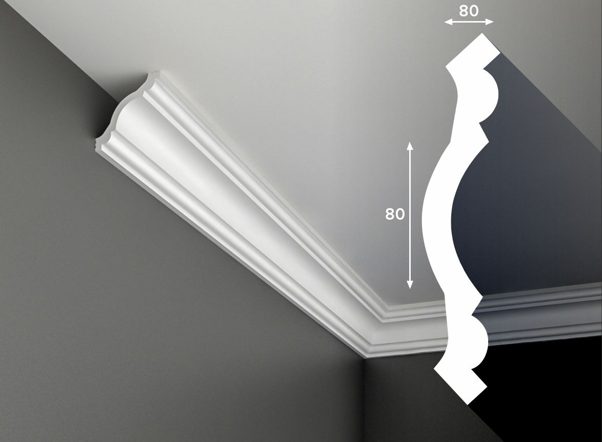 La longitud estándar del rodapié es de 2 my su ancho varía de 1 a 40 cm. La elección del ancho del zócalo del techo depende de los parámetros de la habitación y su configuración.