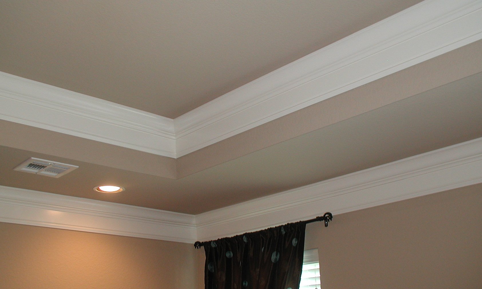 los techos bajos pueden elevarse visualmente si la cornisa está pintada del color de las paredes;
