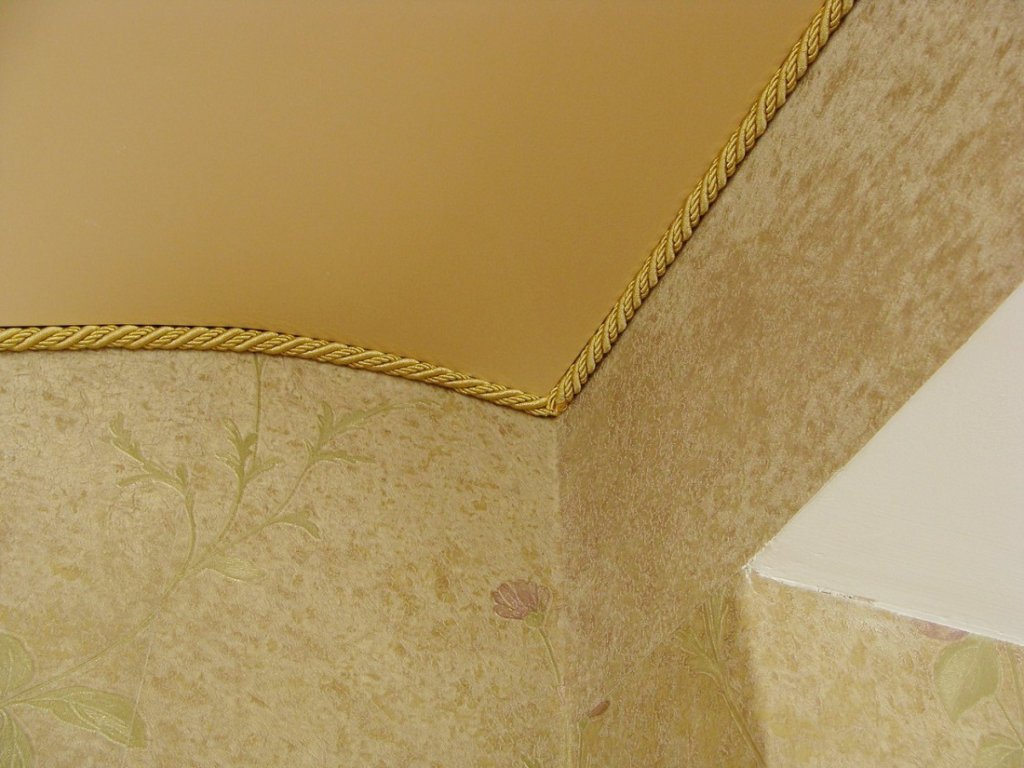 Puede enmascarar el espacio entre la pared y el techo utilizando otros métodos. Los materiales alternativos no abarrotan el espacio, no llaman la atención y son ideales para decorar habitaciones pequeñas. No cuelgan sobre la cabeza y no reducen visualmente la habitación. Estos son insertos decorativos especiales, cintas flexibles, cordones decorativos.