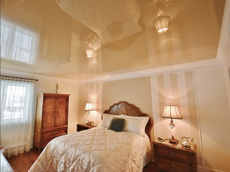Es muy sencillo trabajar con material, y esta es su principal ventaja. Sin embargo, no es adecuado para todos los estilos. Además, con frecuencia los techos terminados de esta manera se ven sin terminar.