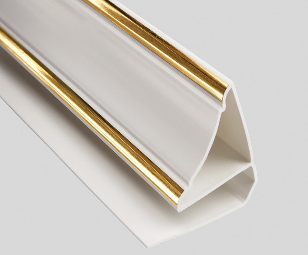 Los zócalos de PVC son ideales para techos de película, ya que su composición es casi idéntica. El material tolera perfectamente la humedad, por lo que es muy popular en la cocina, el baño y el inodoro. Los zócalos de PVC se pueden lavar sin temor a su integridad.