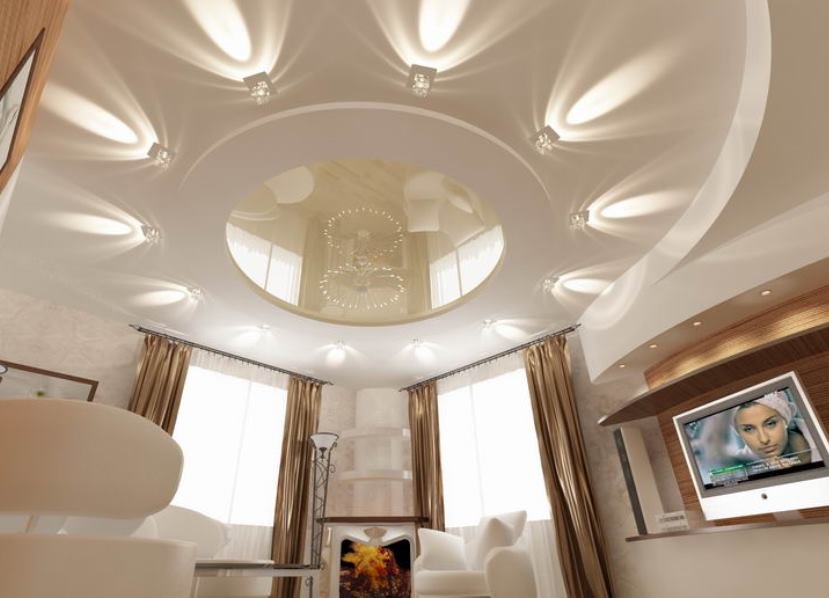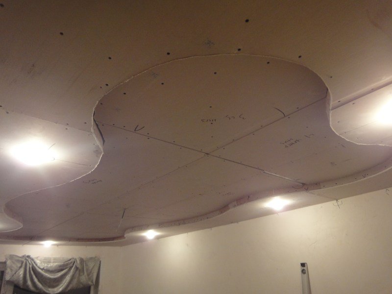 Opciones de diseño, decoración de techo ilimitada. Al mismo tiempo, el panel de yeso le permite construir techos de varios niveles que, cuando se seleccionan adecuadamente, combinados con accesorios de iluminación, ayudarán a crear un interior único de la habitación. El uso de materiales de construcción está permitido en casi cualquier habitación, ya sea una sala de estar, un dormitorio o una sala.