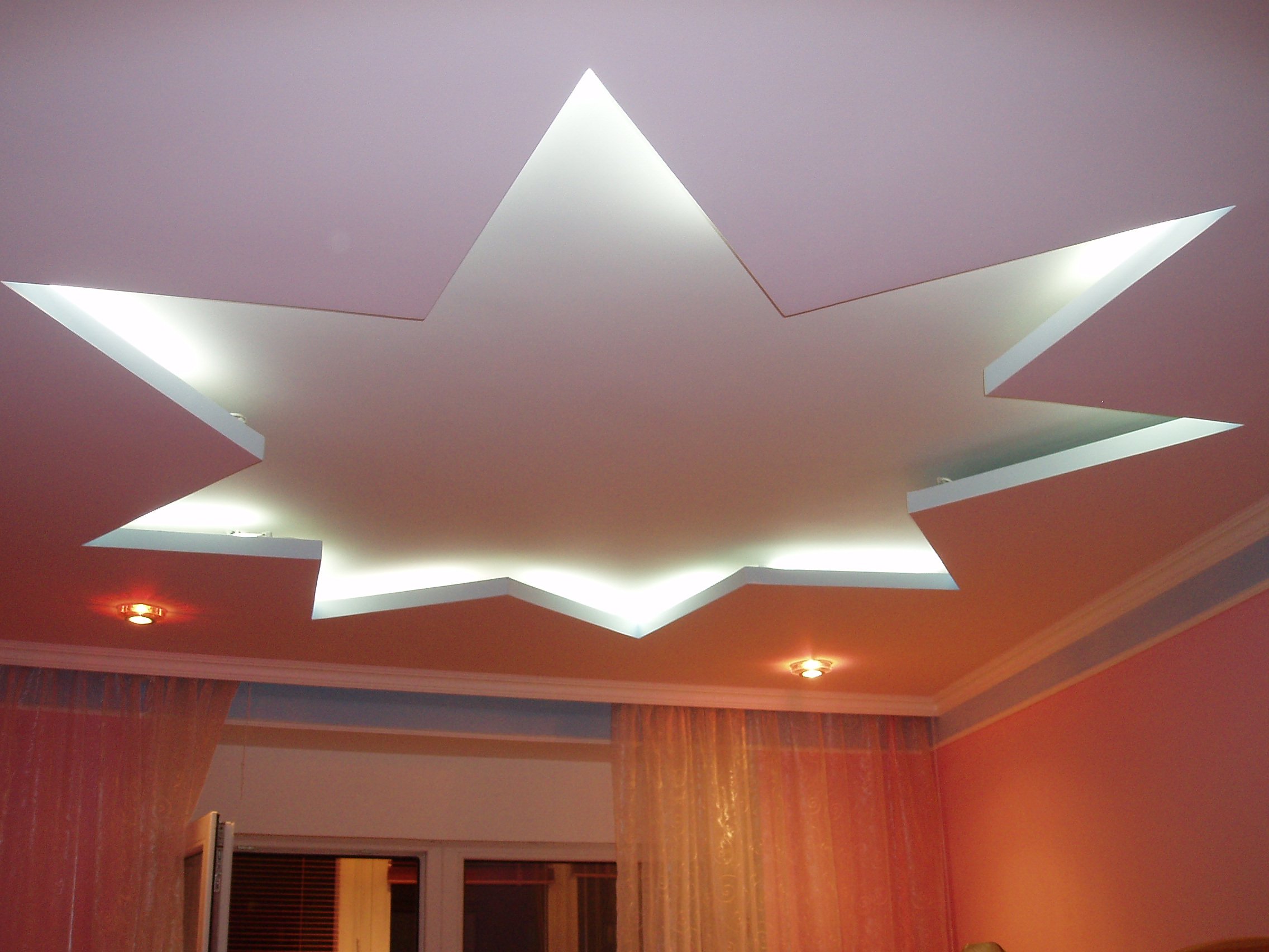 Los techos combinados se ven muy interesantes. Por ejemplo, una combinación de una estructura de tracción con un panel de yeso montado.