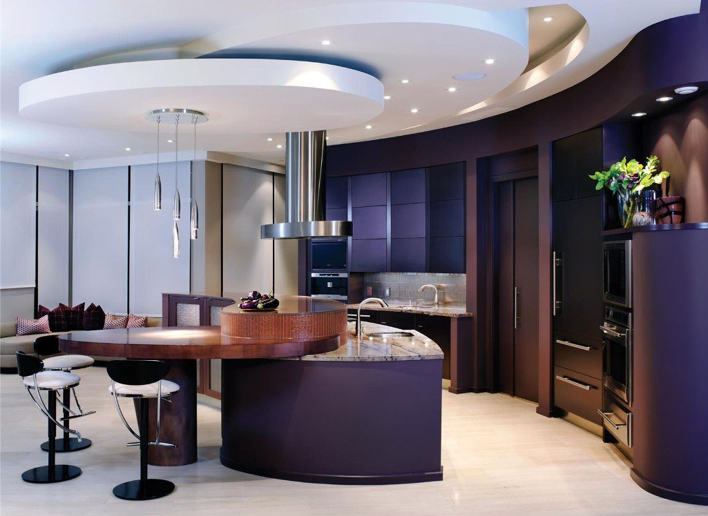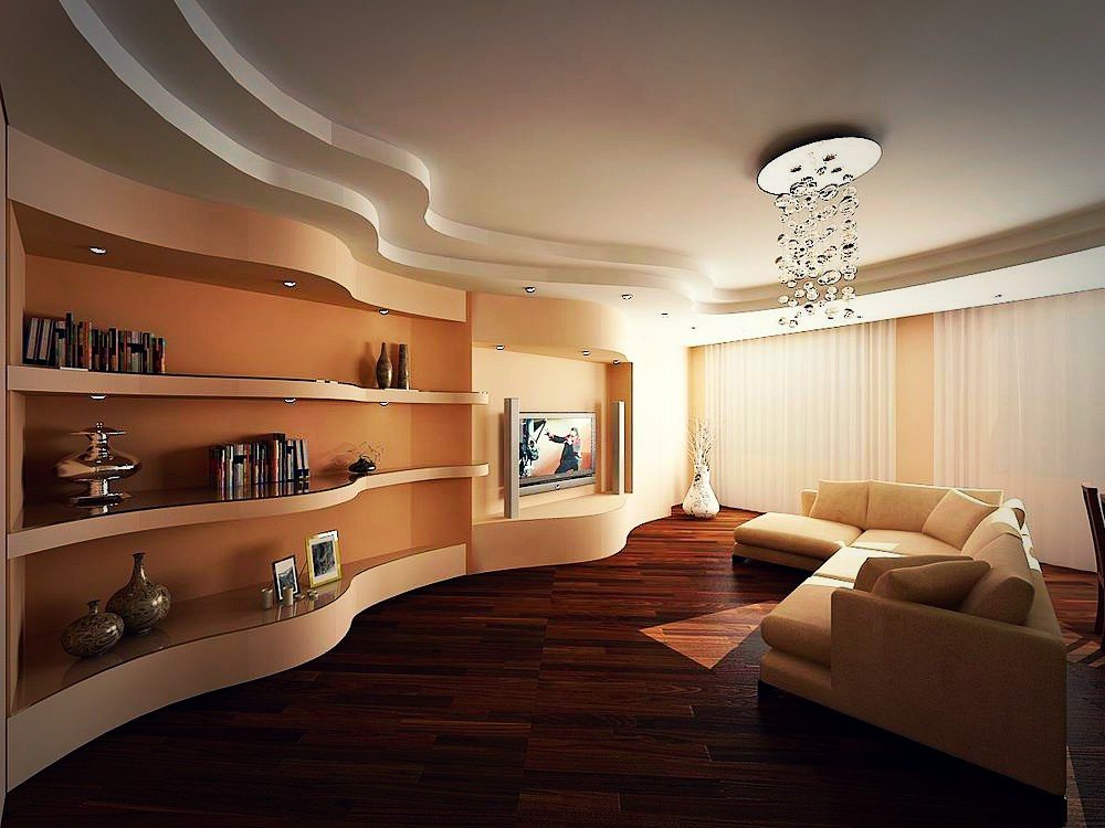 Ovalado o curvo. Le da a la habitación un aspecto original, le permite hacer una zonificación discreta.
