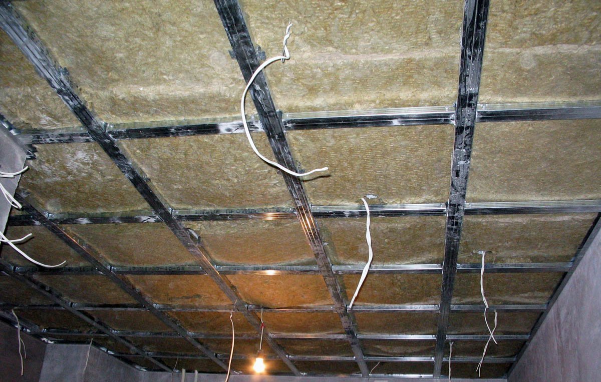 Para losas de concreto, pisos monolíticos, se requiere aislamiento térmico adicional. Muy a menudo, se selecciona lana mineral, poliestireno. El aislamiento llena las secciones vacías del marco. En este caso, se tiene en cuenta la presencia de lámparas de iluminación incorporadas. El sobrecalentamiento del cableado puede provocar un incendio.