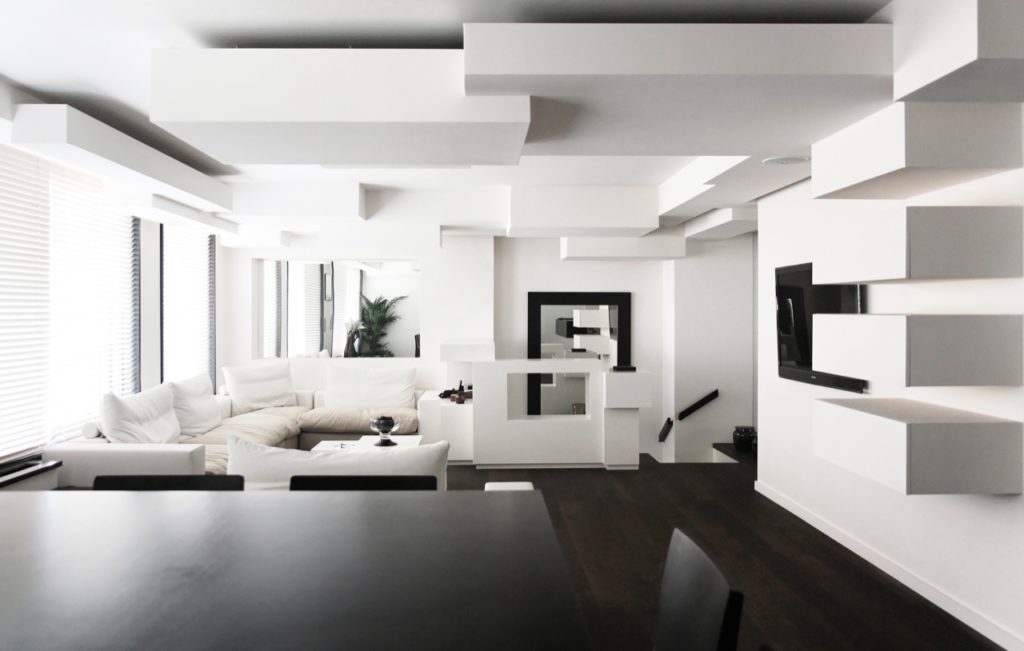 Minimalismo Los techos de una sola capa son adecuados, tienen una apariencia bastante simple, sin elementos decorativos innecesarios. Como iluminación, se debe dar preferencia a las tiras de LED, focos.