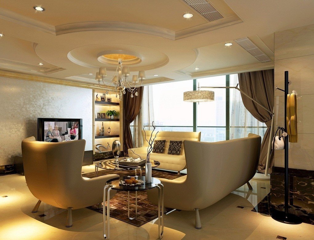 Ronda. Se utiliza para resaltar el centro de la habitación, combina bien con los objetos instalados allí (sofá, mesa).