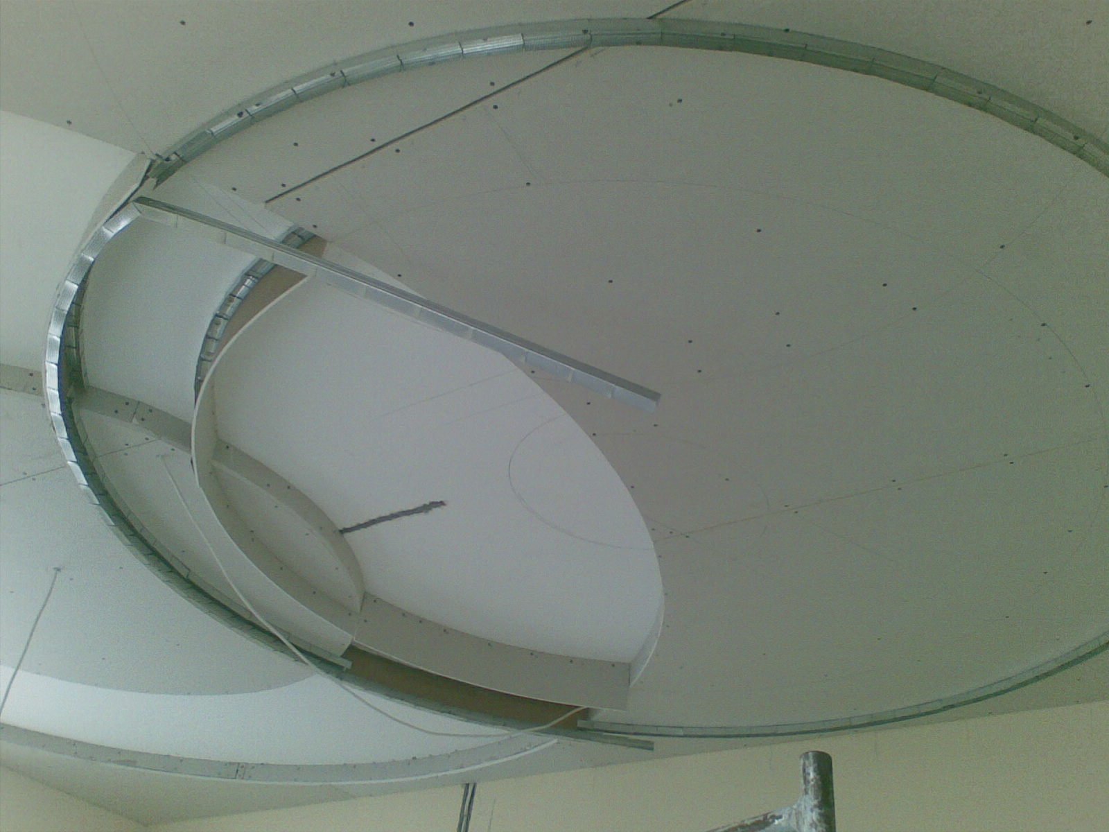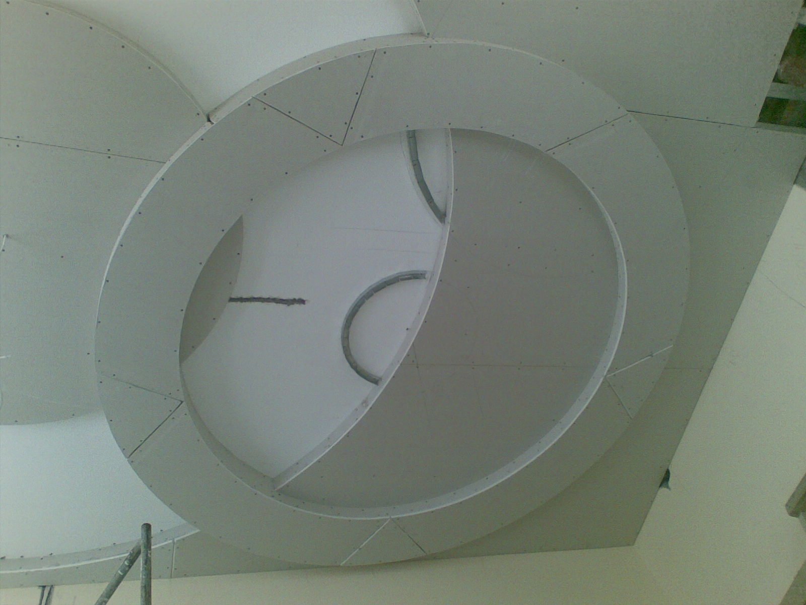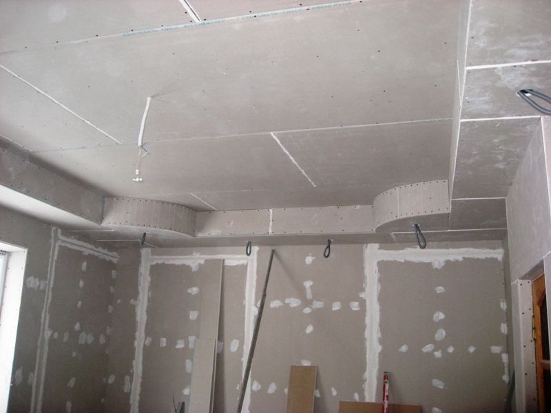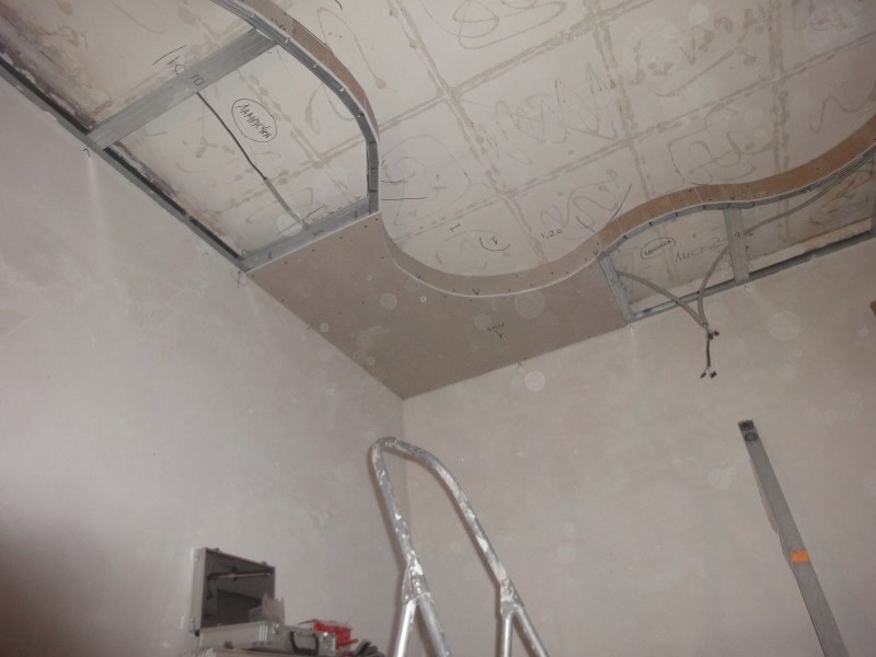 Además de cortar y sellar juntas, las láminas de cartón yeso se pueden doblar, dándoles formas onduladas y curvas, por ejemplo, un arco, un óvalo, un círculo, una línea diagonal curva. Para doblar hojas, use el método seco o húmedo. Junto con la hoja, se dobla el perfil de guía, en el que se realizan cortes en los lados con la ayuda de unas tijeras para metal.