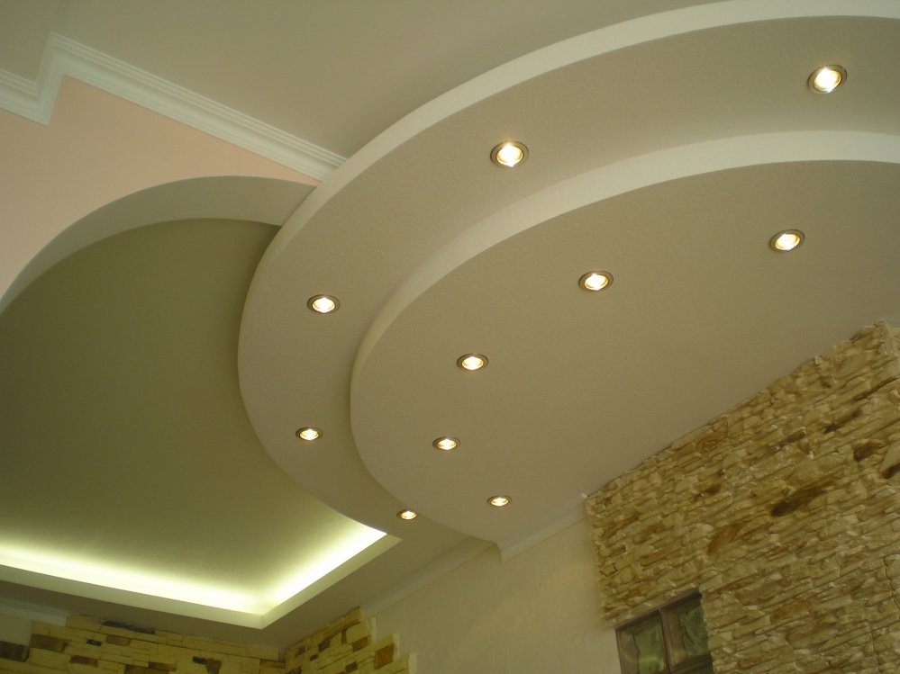 La iluminación ocupa un lugar importante en toda la estructura. Realiza, además de la principal, también una función decorativa. Depende de la elección correcta de cada lámpara, LED. Puede enfatizar el techo o hacerlo antiestético e insípido.La iluminación del techo de pladur puede ser: abierta, cerrada, combinada.