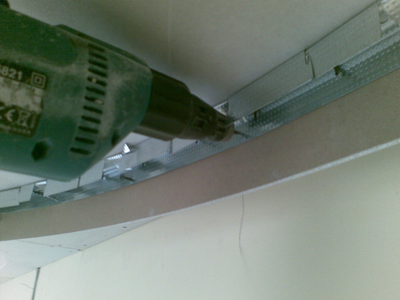 El nivel marca los puntos en las esquinas restantes ubicadas a la misma altura. Después de eso, se dibuja un nivel entre las marcas en forma de hilo, o se dibuja una línea que conecta todos los puntos marcados. Más adelante en el marcado, se establece el perfil de guía UD. Para hacer esto, con un taladro, se taladran agujeros en los que se tapan los tacos. Las costuras de acoplamiento se fortalecen aún más, entre los dos perfiles a ambos lados de la junta se inicia una pieza de estaño, madera contrachapada.