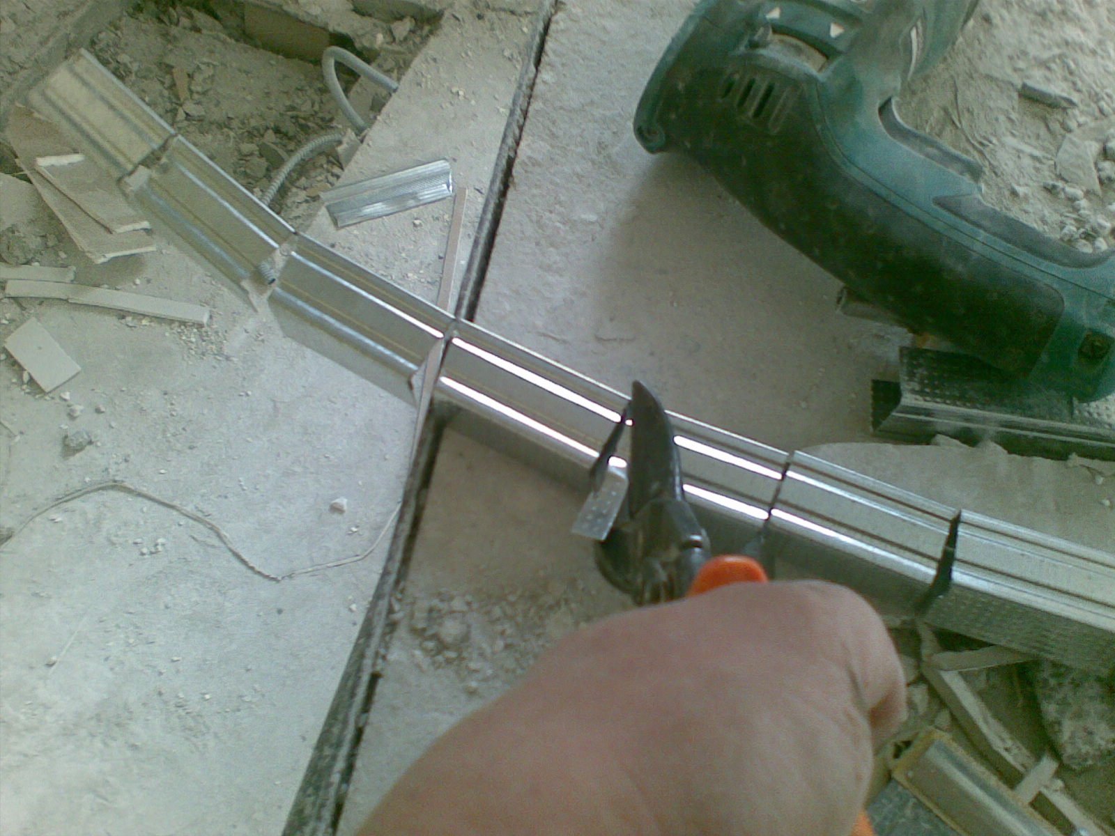 martillo, tijeras de metal, cuchillo de construcción;