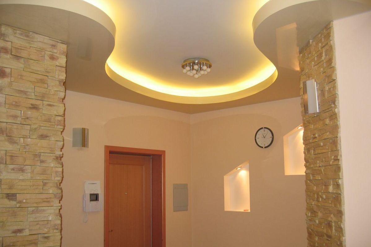 El techo de paneles de yeso es popular entre muchos propietarios privados. El material es económico, se puede usar tanto para oficinas como para una casa, departamento, equipando el techo desde el pasillo hasta el pasillo. Es fácil trabajar con láminas de cartón yeso, mientras que al usarlas puede crear diseños complejos que enfatizan el interior individual de la habitación.