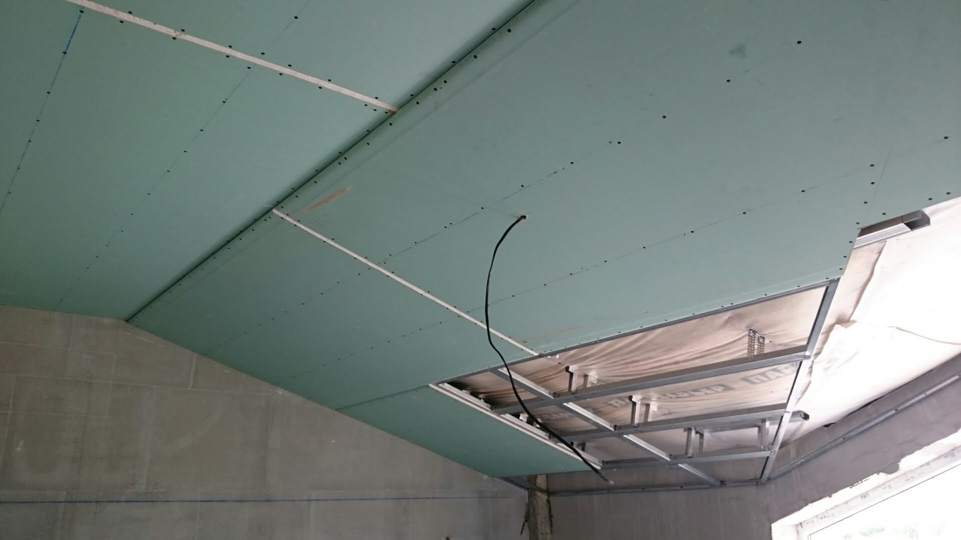 Loft Las juntas entre láminas de cartón yeso no están intencionalmente cubiertas con masilla. No resista una superficie perfectamente plana. Al pintar manchas, rugosidad. Las comunicaciones se dejan abiertas.